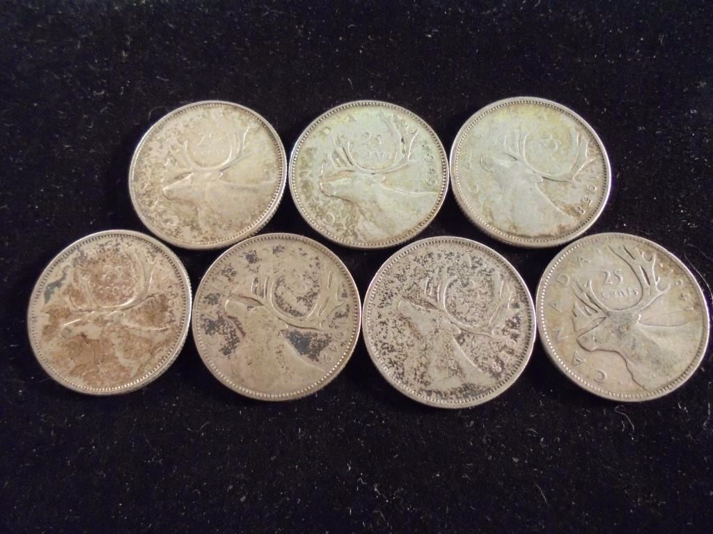 7-ASSORTED 1940'S-50'S CANADA SILVER 25 CENTS