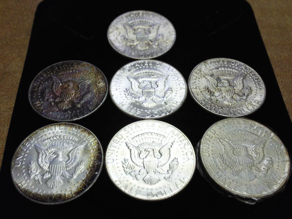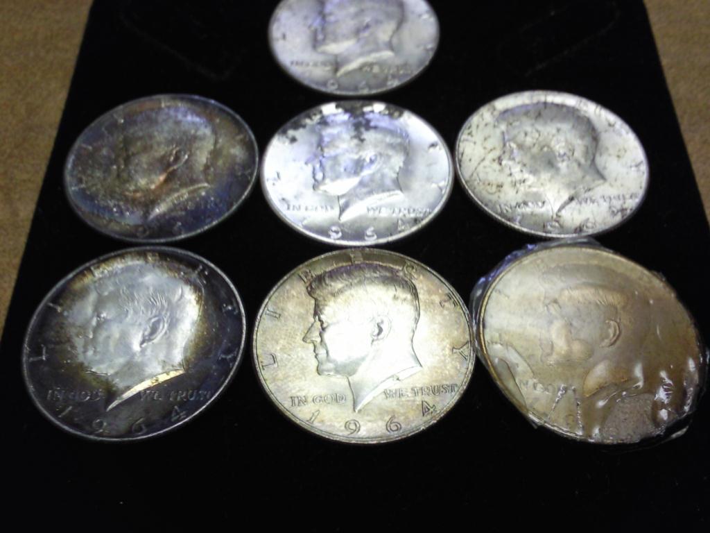7 ASSORTED 1964 SILVER KENNEDY HALF DOLLARS