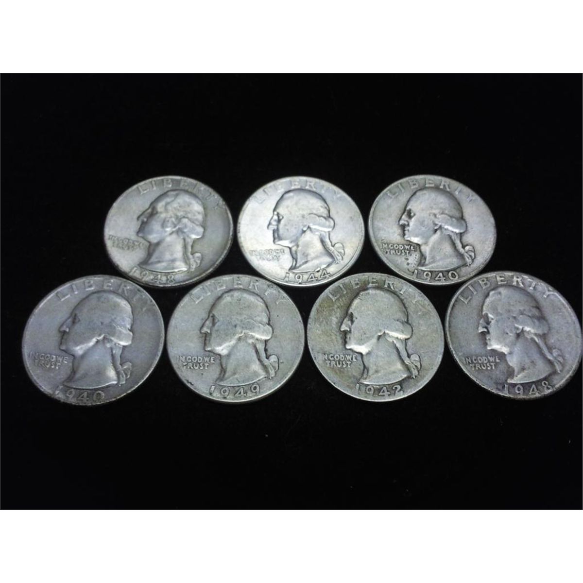 7 ASSORTED 40'S WASHINGTON SILVER QUARTERS