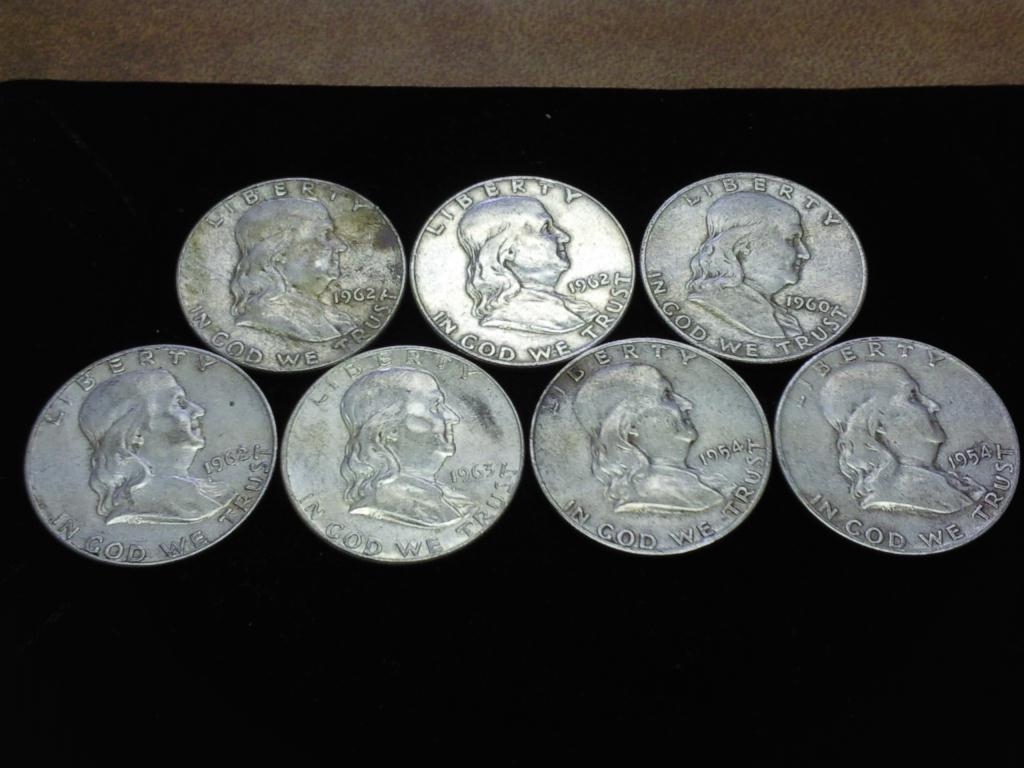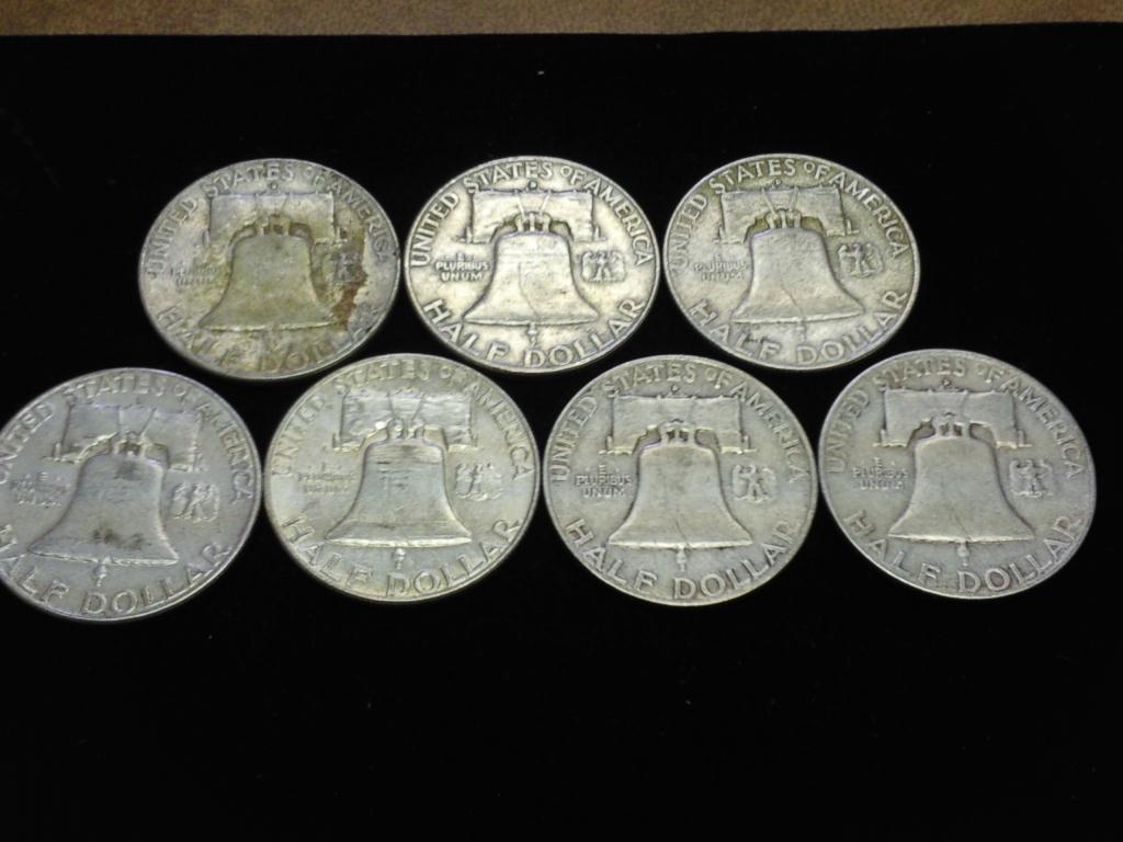 7 ASSORTED FRANKLIN HALF DOLLARS $3.50 FACE VALUE
