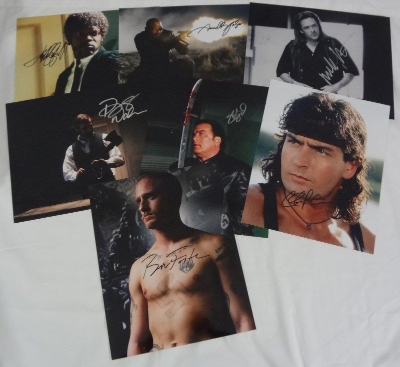 7 AUTOGRAPHED 8x10's - Charlie Sheen, Ben Foster, Steven Seagal,