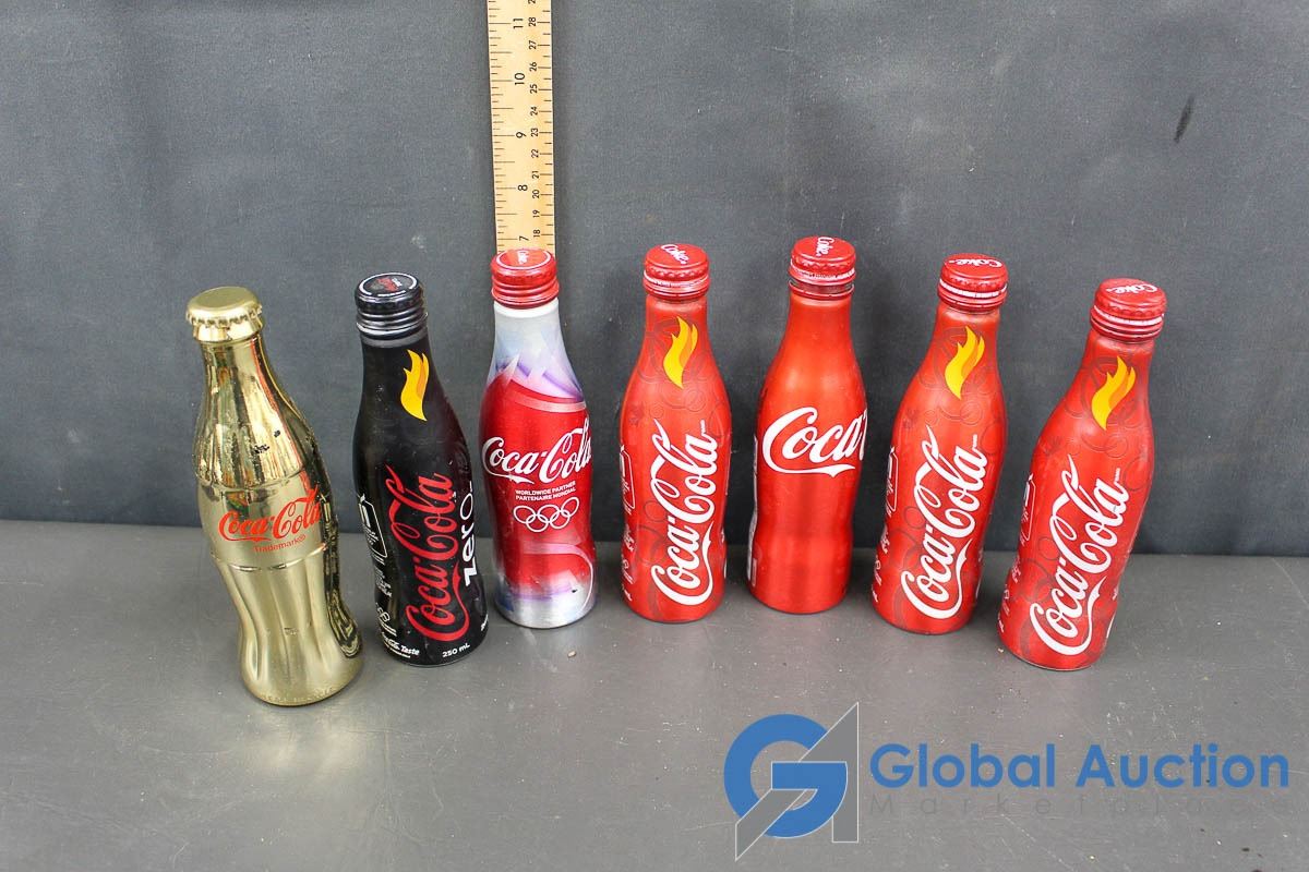 (7) Aluminum Coke Bottles (4 full)