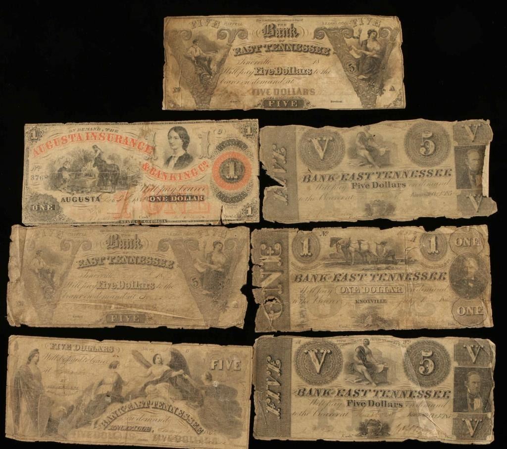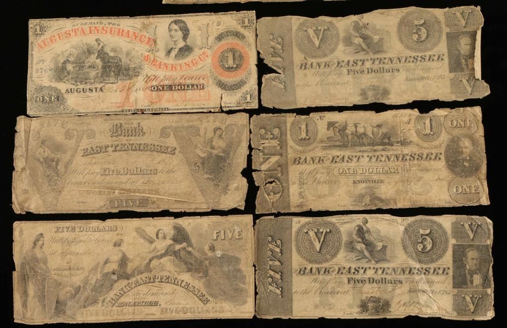 all from the Bank of East Tennessee, different denominations, all from the 1800's except one from Augusta Insurance and Banking Co. $1 1807