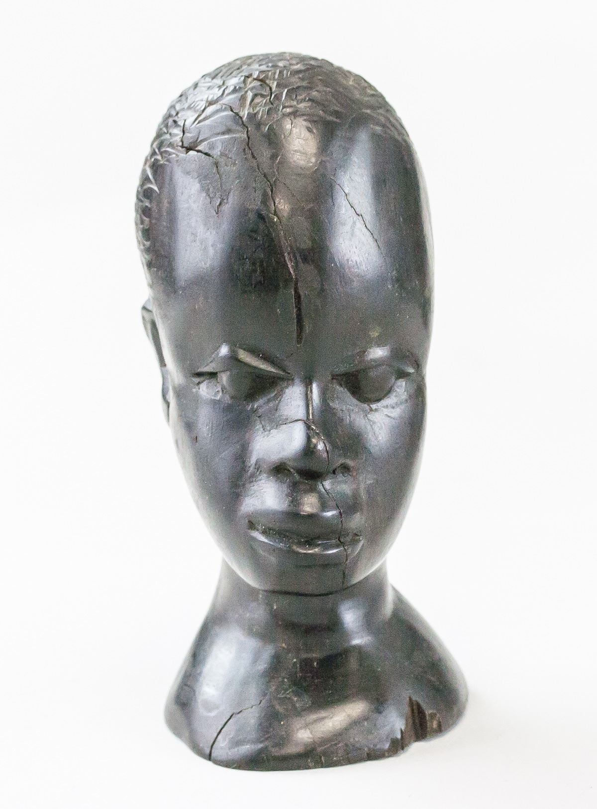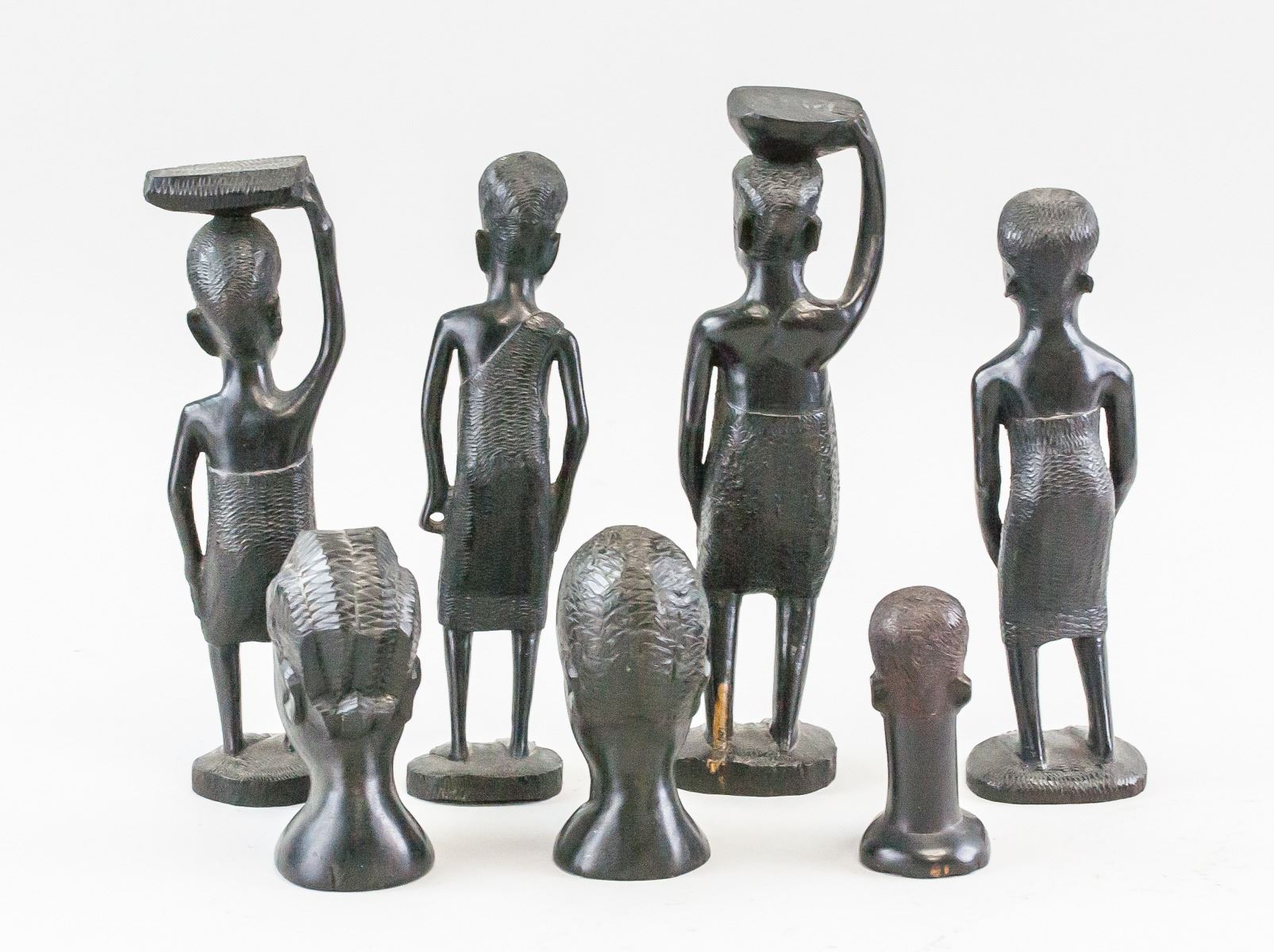 Seven (7) assorted African iron wood carvings. Featuring various figures and heads. 12 x 6 cm, 980 grams (total)
