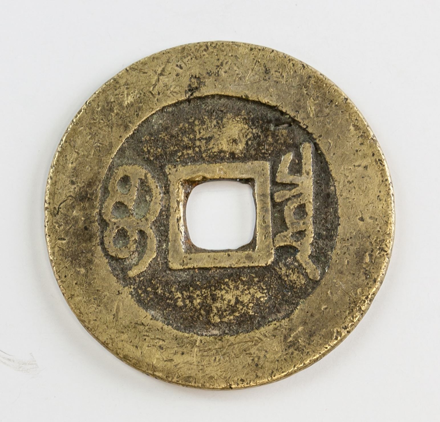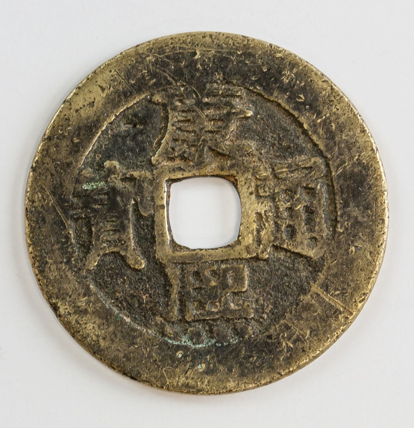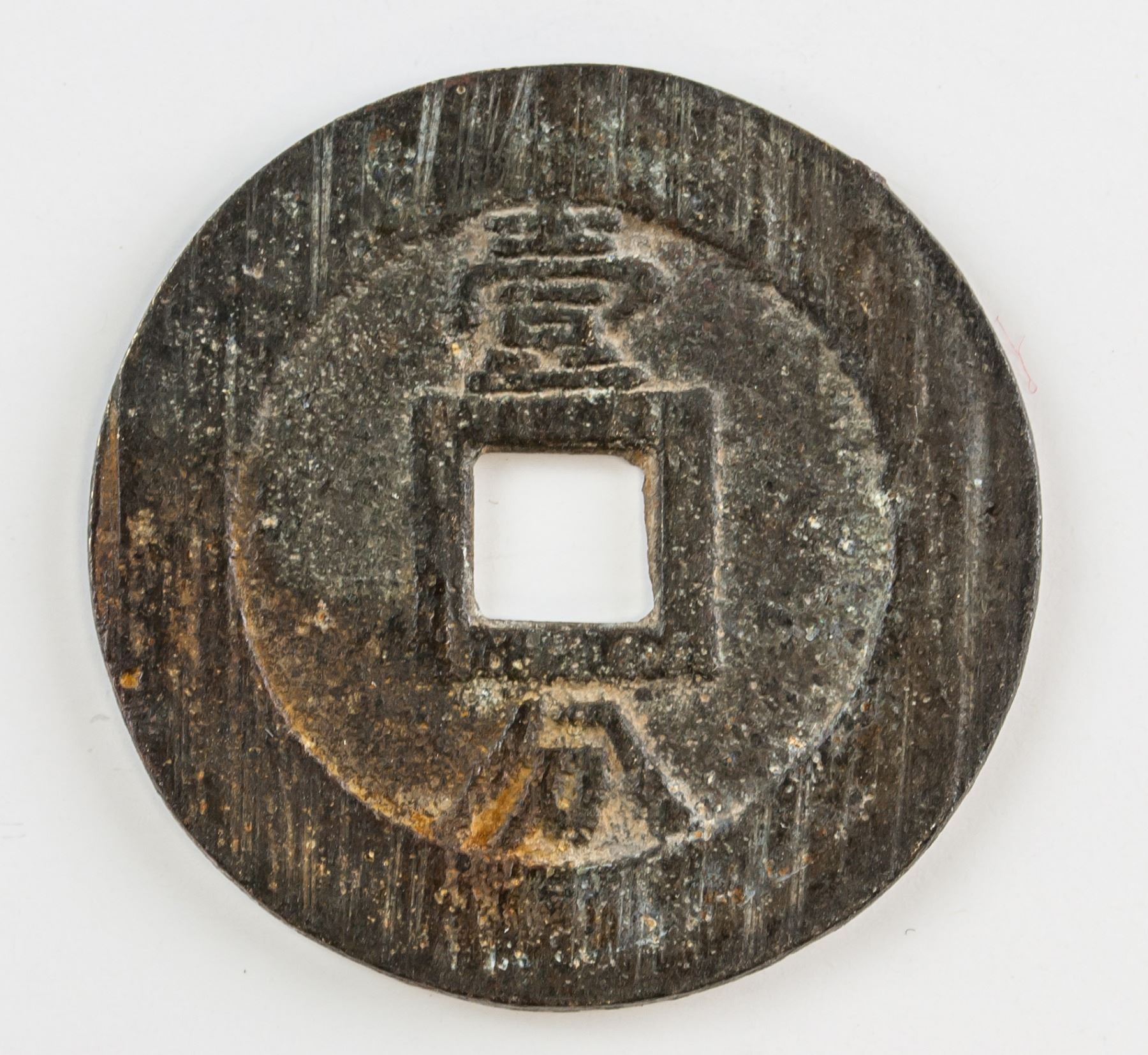Seven assorted Chinese coins, one 1646-1659 Southern Ming Yongli Tongbao 1 Fen bronze coin (Hartill 21.79), one Qing dynasty Daqing Yinbi copper coin, one 1094-1097 Northern Song Shaosheng Yuanbao bronze coin(Hartill 16.291), one 1107-1110 Northern Song Daguan Tongbao bronze coin (Hartill 16.418), one 1086-1093 Nothern Song Yuanyou Tongbao bronze coin (Hartill 16.262), one 1004-1007 Northern Song Jingde Yuanbao bronze coin (Hartill 16.49), one 1662-1722 Qing Kangxi Tongbao Beijing Mint (Hartill 225), D: 23.85-38.22 mm, 43.36 grams total