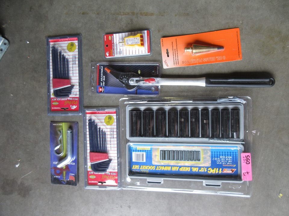 Prybar, Hitch Pin, Receptacle Tester, Plumb Bob, 2 Hex Key Sets & Impact Sockets