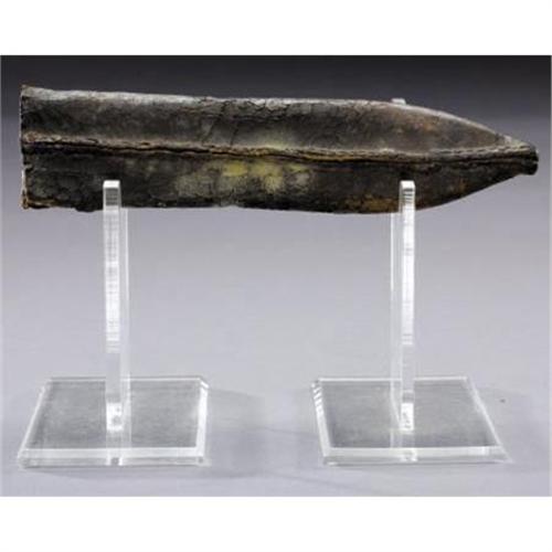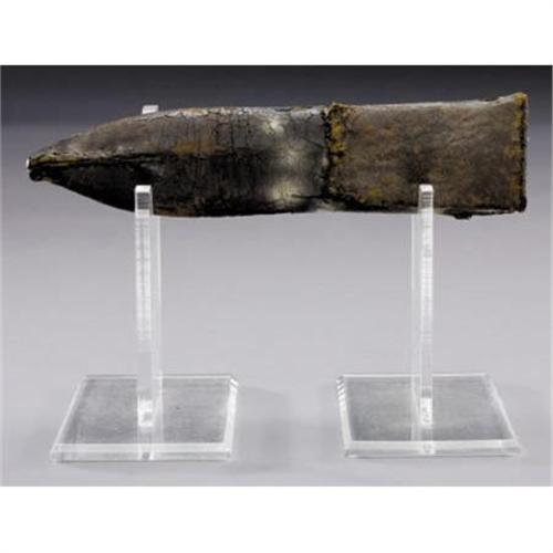 <B>A 7" BOWIE KNIFE SHEATH </B></I>This is a very old 7" Bowie knife sheath made to accept a 1 1/4" blade. Rough-hewn and rugged, the sheath sewn up the front side and has been fashioned with a belt loop on the back.<I> From The William Turner Collection.</B></I><BR><BR><b>Shipping:</b> Miscellaneous Collectibles, Smal (<a target="_blank" href="http://www.heritageauctions.com/common/shipping.php">view shipping information</a>)