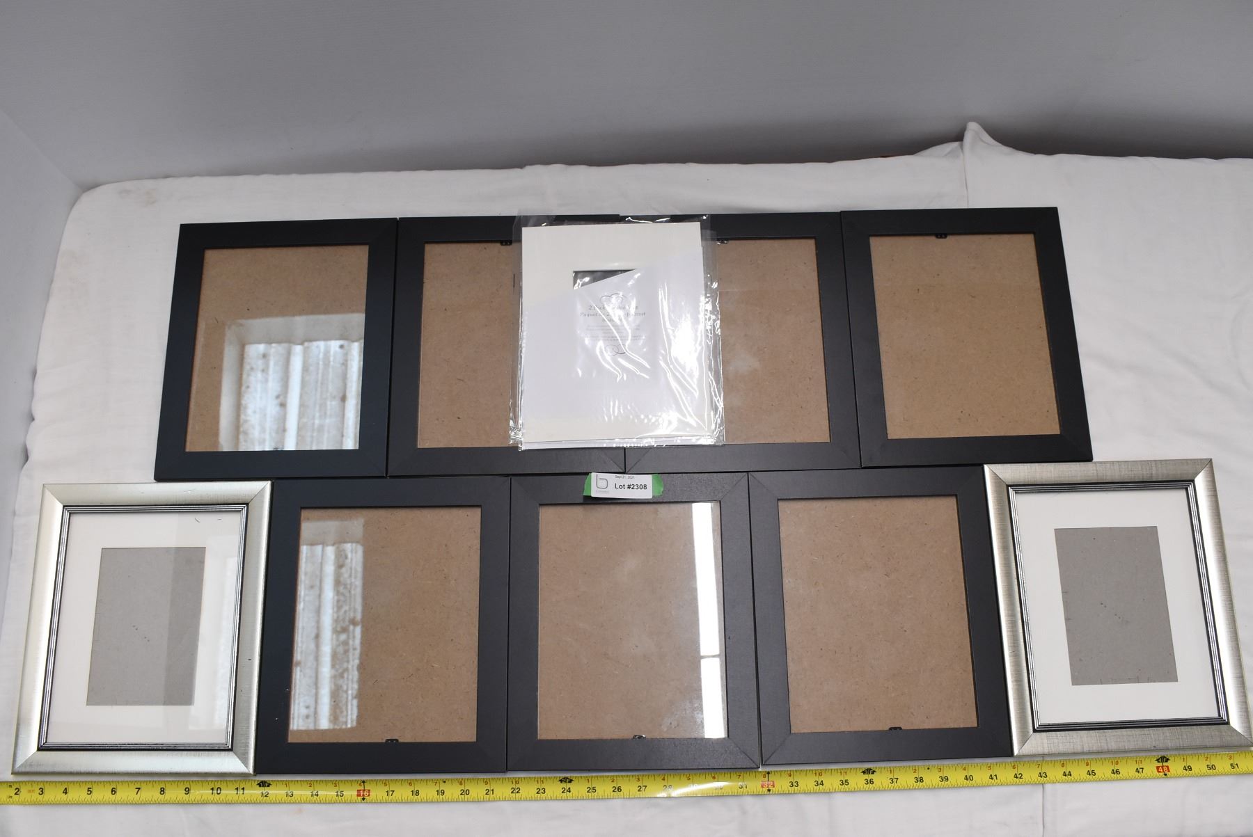 7 Black picture frames, 2 silver picture frames, 2 paper frames.
