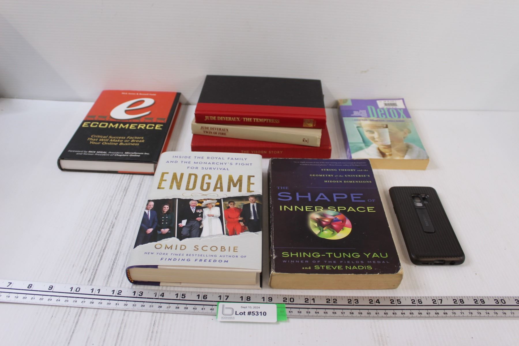 (7) Books: Endgame, Twin of Fire, The Temptress, Ecommerce, Detox, Misc. & Samsung Phone Case