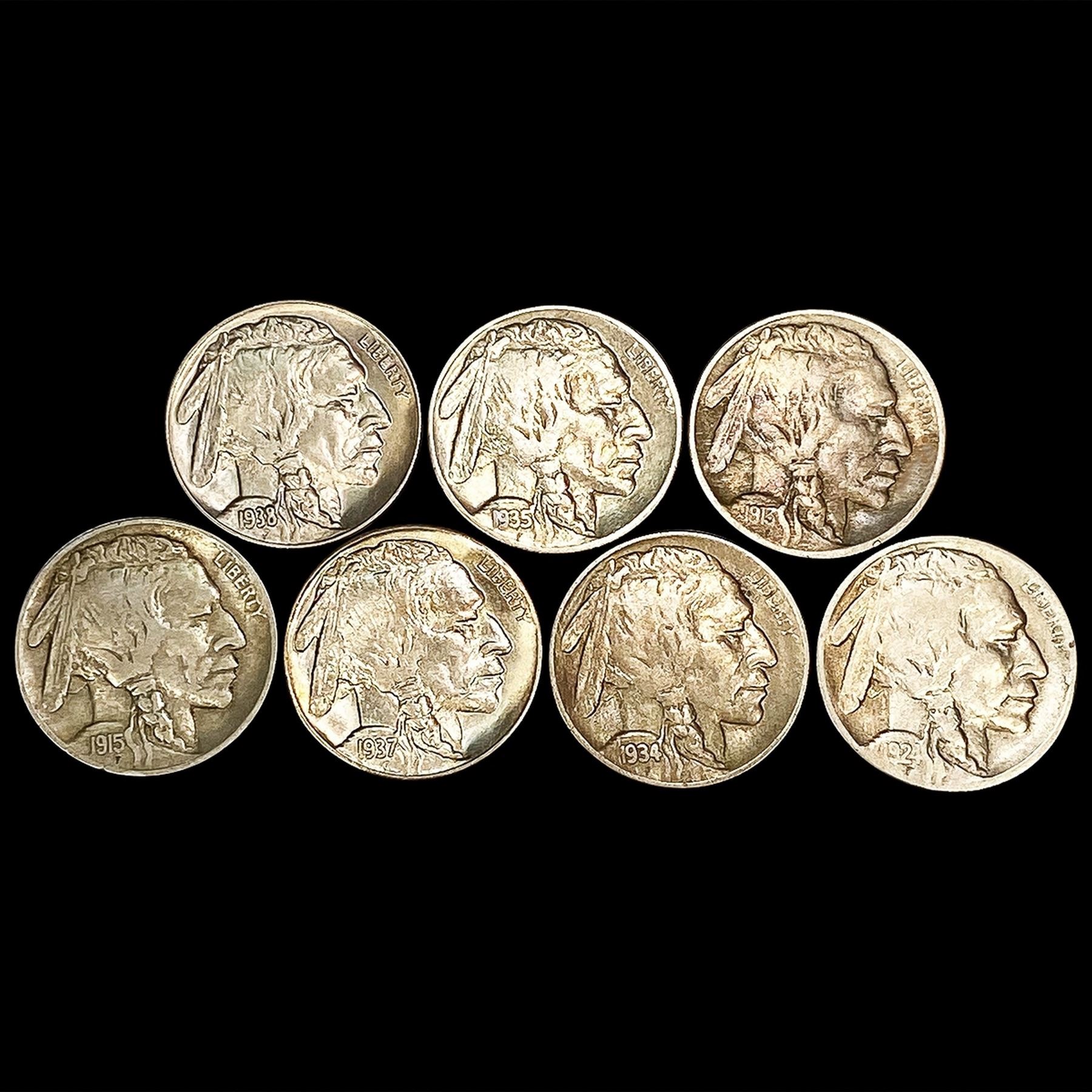 (7) Buffalo Nickels (1913-D, 1915, 1924-S, 1934-D