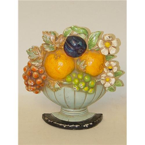 7" CAST IRON FRUIT BOWL DOORSTOP - FRUIT BOWL BY HUBLEY #456 (7" T X 7" W) - OLD PAINT, WEAR & LOSSES;