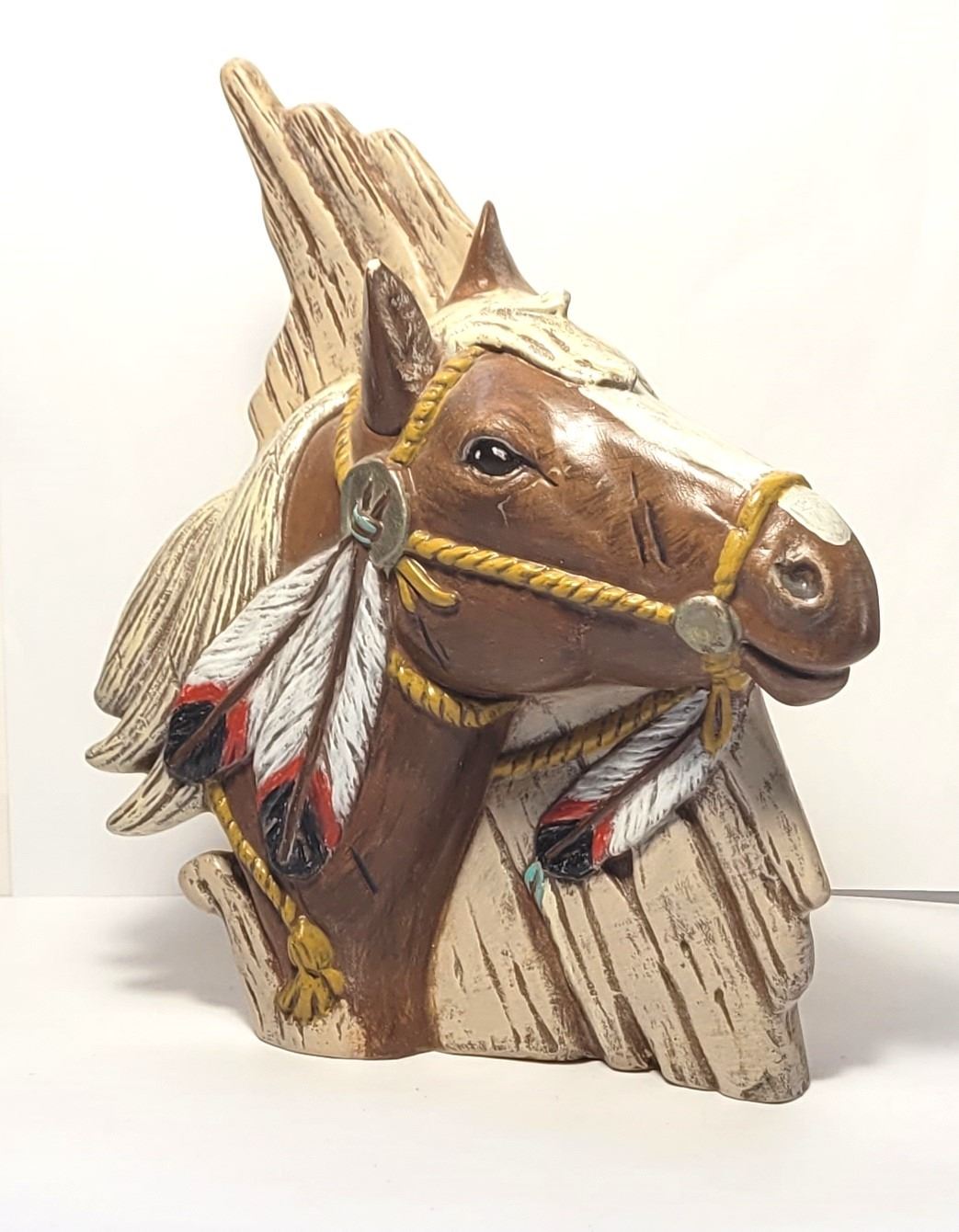 7) CERAMIC HORSE BUST WITH ABORIGINAL ACCENTS,