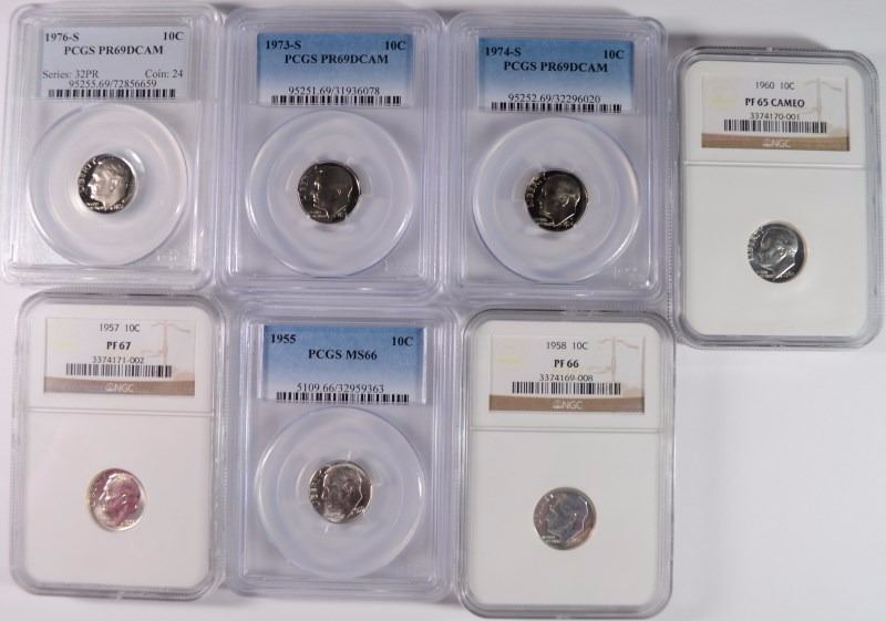 4 PCGS 1955 MS-66, 1973-S PR-69 DCAM, 74-S PR-69 DCAM, 76-S PR-69 DCAM 3 NGC 1957 PF-67, 58 PF-66, 60 PF-65 CAMEO, ESTIMATE $70 - $90. SILVER TOWNE AUCTIONS IS RANKED ONE OF THE BEST INTERNET AUCTIONS