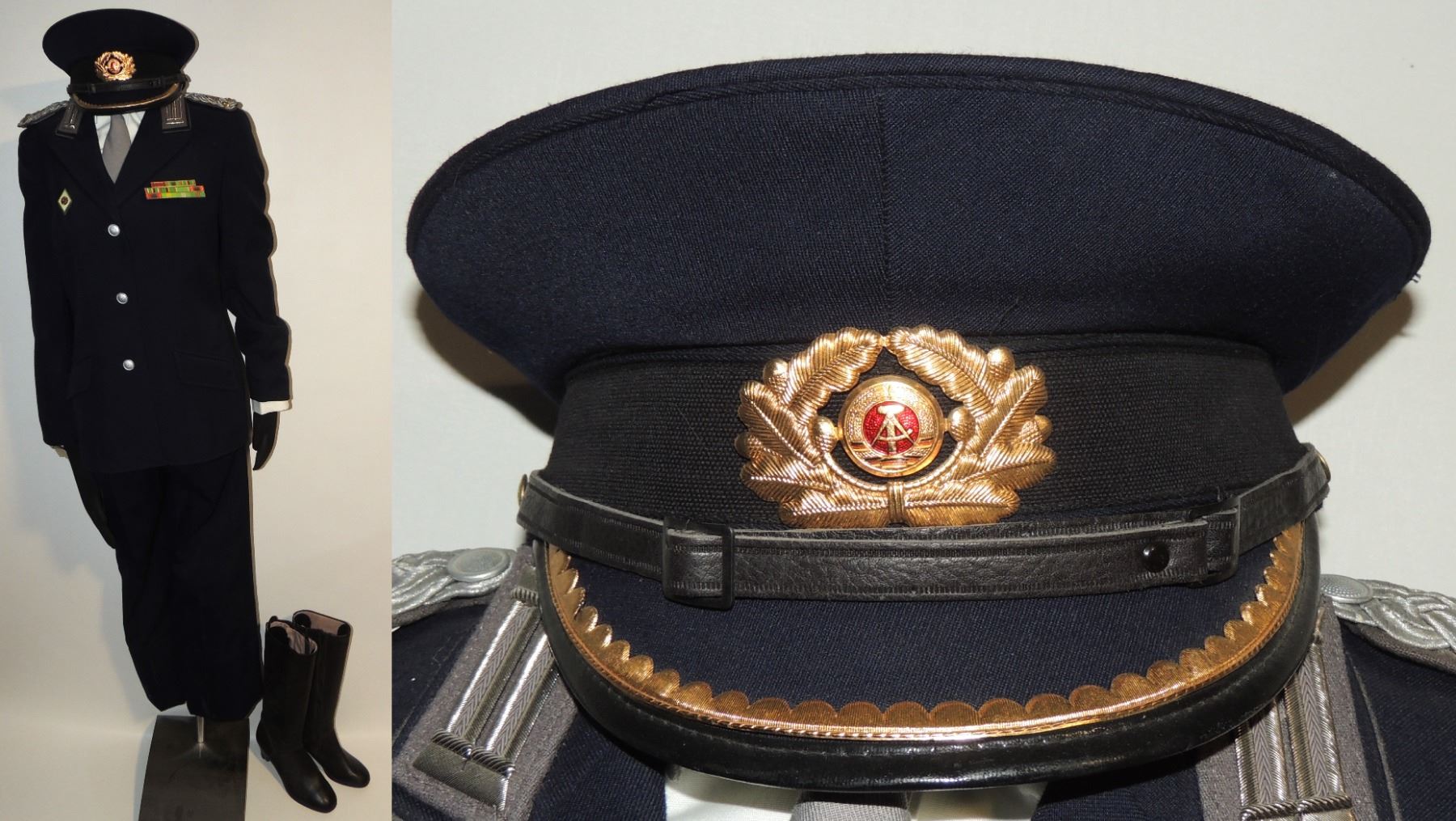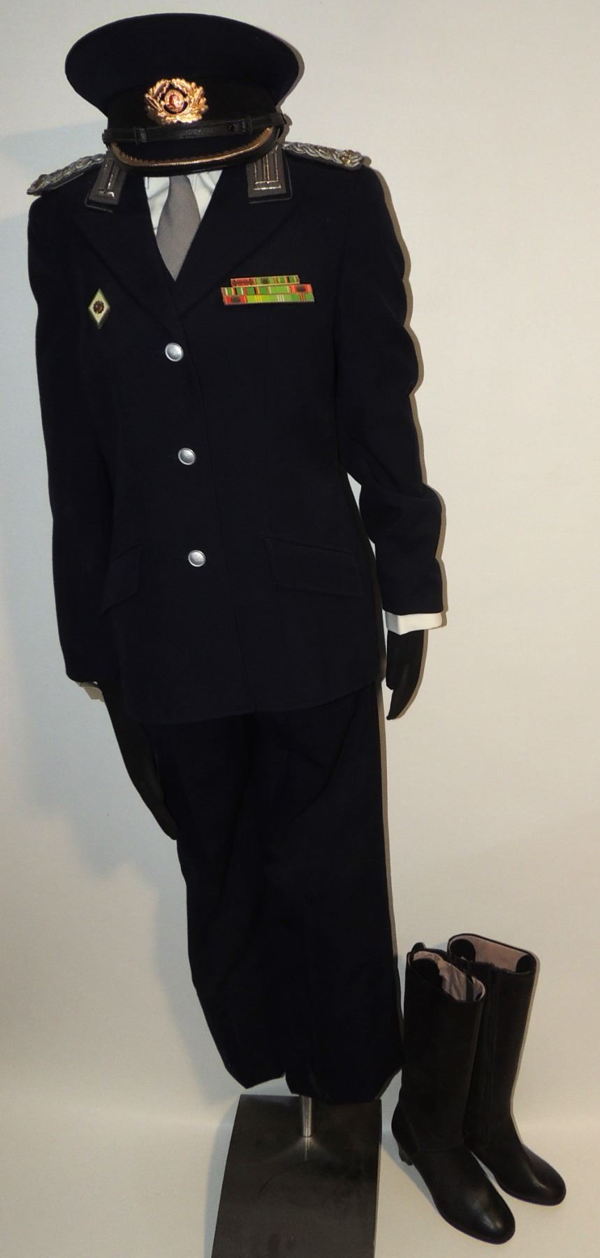 Volksmarine VOLKSMARINE (KRIEGSMARINE) NAVY WOMENS UNIFORM WITH PEAKED OFFICERS CAP, MEDAL BAR AND BADGE, PANTS AND WOMENS BOOTS COLD WAR ERA USSR CCCP UNIFORM
