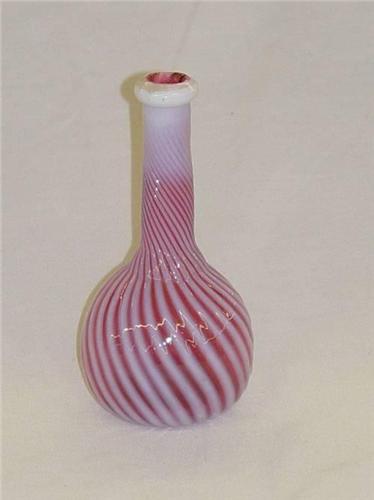 7" CRANBERRY OPALESCENT SWIRL BARBERS BOTTLE W/ POLISHED BOTTOM;