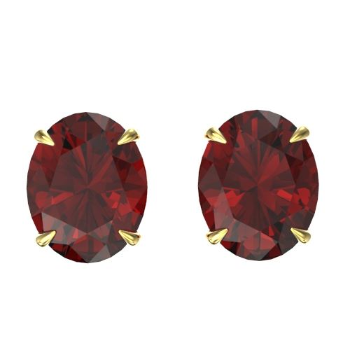 REF-34F9N -21664 ---- 7 CTW Garnet Designer Inspired Solitaire Stud Earrings 18K Yellow Gold ---- Luxury Designer Brand Earring Appraised at $2,100 Certificate Number US21664 18k Yellow gold, Earring Size is 12 Millimeter, Earring measuring approx. 12 mm x 10mm, weighing in total approx. 3.4 grams. Made in the USA and is stamped 18k, Main stone 7 carat total weight containing 2 pieces of Saturated purplish Red color with AAA quality Oval shape cut Garnet , Stone #2 carat total weight containing pieces of color with quality shape cut
