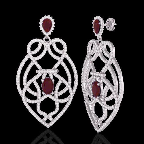 7 CTW Ruby & Micro VS/SI Diamond Heart Earrings Designer Solitaire 14K White Gold ---- Luxury Designer Brand Earring Appraised Retail Price at $27,300 ---- SKU Number US21138 14k White gold Earring Size is 2 Inches, Earring measuring approx. 2" x 1" , weighing in total approx. 16 grams. Made in the USA and is stamped 14k, Main stone 2.20 carat total weight containing 2 pieces of Mid-Opaque-Deep Red color with AAA quality Oval shape cut Ruby , Stone #2 1 carat total weight containing 2 pieces of Strong Red color with Mid-Opaque quality Pear shape cut