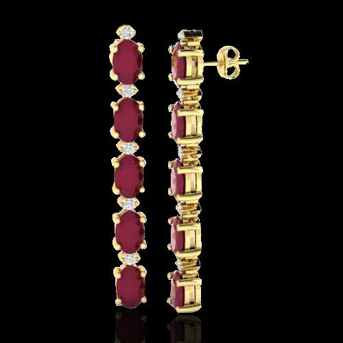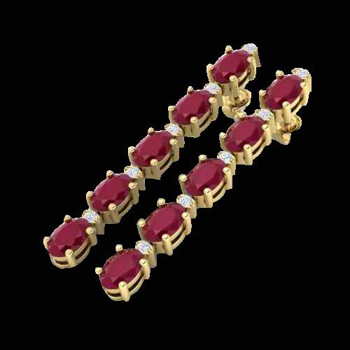 REF-64W4F -21530 ---- 7 CTW Ruby & VS/SI Diamond Tennis Earrings 10K Yellow Gold ---- Luxury Designer Brand Earring Appraised at $4,600 Certificate Number US21530 10k Yellow gold, Earring Size is 1 1/2 Inches, Earring measuring approx. 4 mm X 1 1/2" , weighing in total approx. 4 grams. Made in the USA and is stamped 10k, Main stone 6.75 carat total weight containing 10 pieces of Mid-Opaque-Deep Red color with AAA quality Oval shape cut Ruby , Stone #2 0.25 carat total weight containing 10 pieces of H-I color with VS/SI quality Round shape cut Diamond