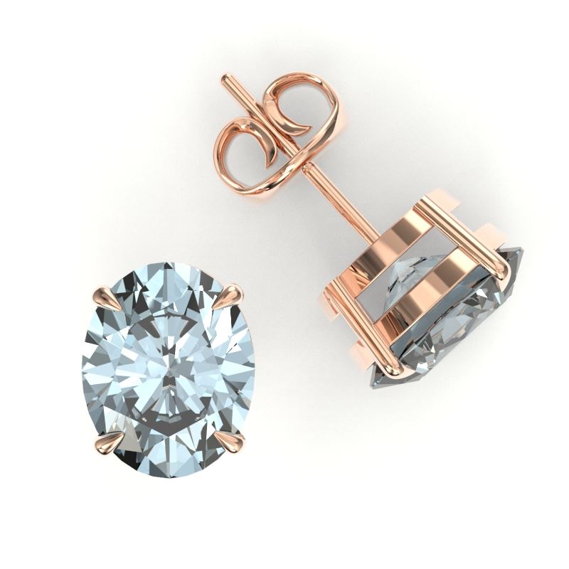 REF-27N6Y -21685 ---- 7 CTW Sky Blue Topaz Designer Inspired Solitaire Stud Earrings 14K Rose Gold ---- Luxury Designer Brand Earring Appraised at $1,800 Certificate Number US21685 14k Rose gold, Earring Size is 12 Millimeter, Earring measuring approx. 12 mm x 10mm, weighing in total approx. 3 grams. Made in the USA and is stamped 14k, Main stone 7 carat total weight containing 2 pieces of Translucent Sky Blue color with AAA quality Oval shape cut Topaz , Stone #2 carat total weight containing pieces of color with quality shape cut