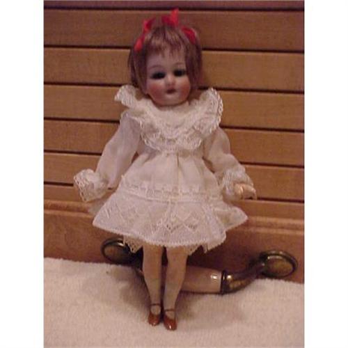 <tr><td>Title:7" Cabinet sized bisque head doll</td></tr>