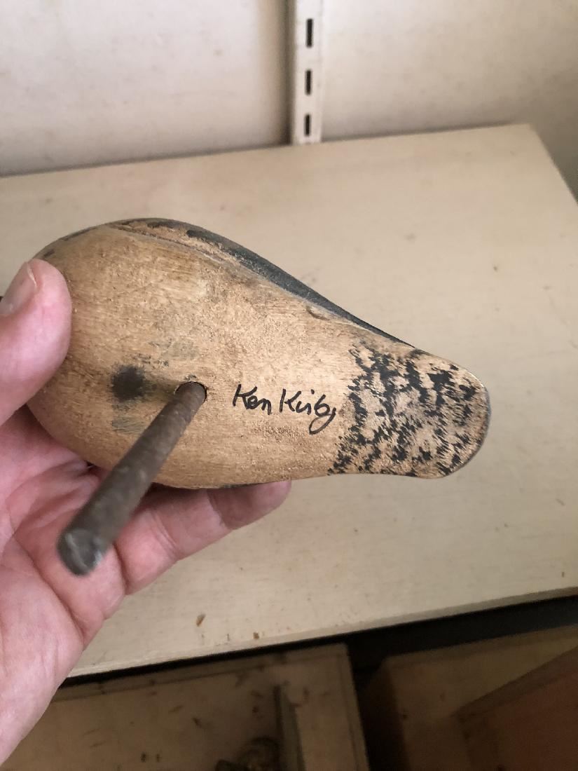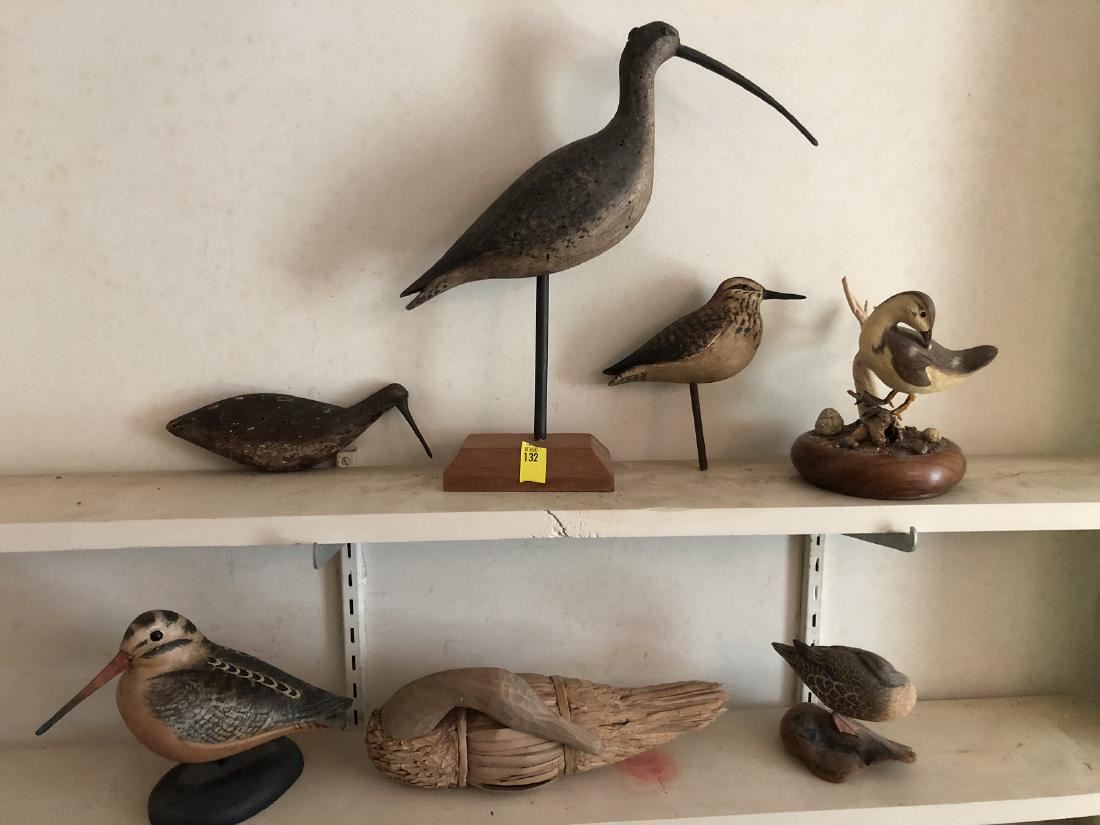 7 carved shore birds including carved birds signed by Ken Kirby, Fisher, Condon, and a nice antique carved folk art shore bird. All are part of a lifetime collection and being sold for one monies. (RL)