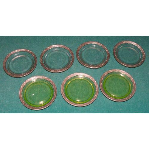 Un-attributed. 20 century. A set of seven glass coasters with sterling silver trim.