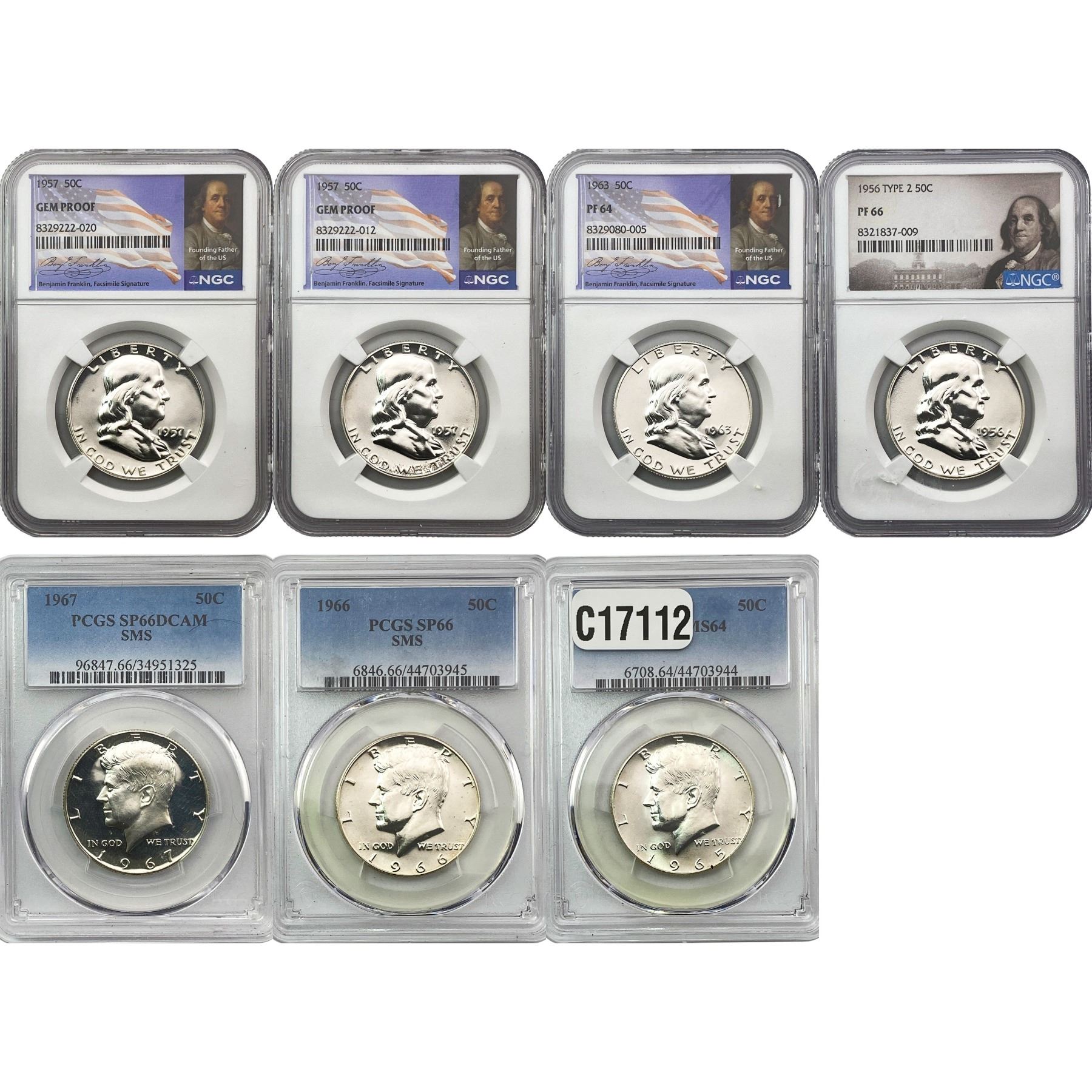 [7 Coins] 1956-1967 Various Silver Half Dollars PCGS/NGC PF/MS64-66