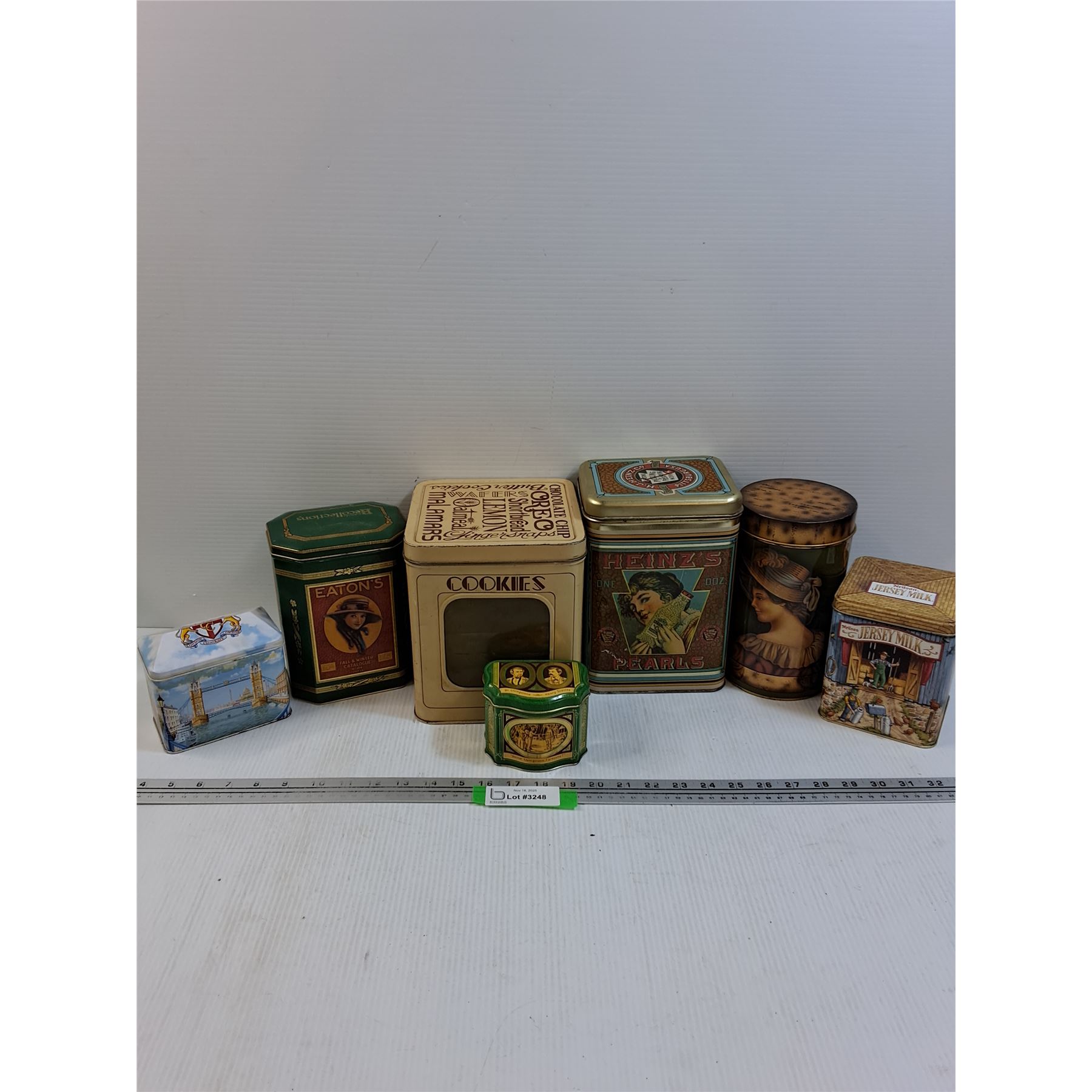 (7) Collectible Tins: Eatons, Heinz, Cookies, Jersey Milk, Misc