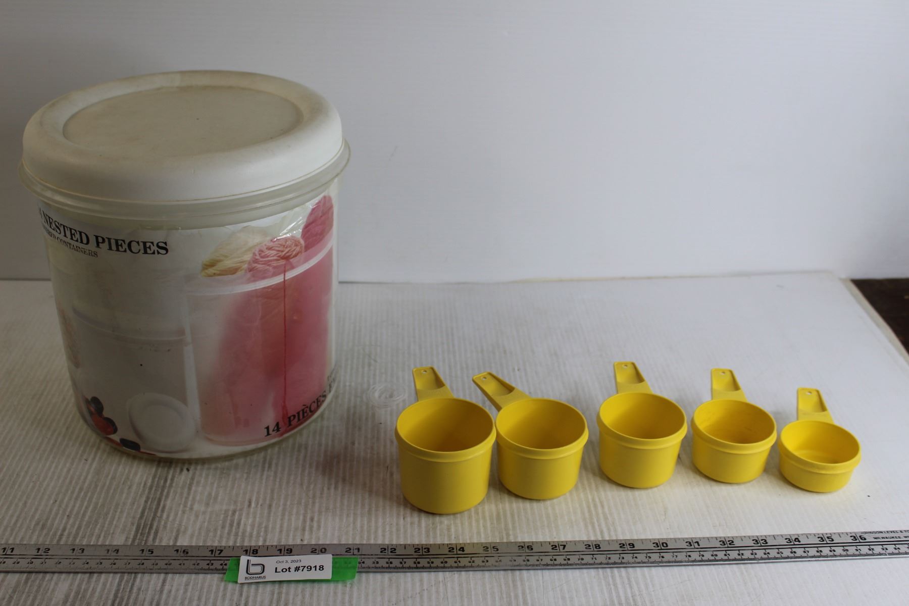 (7) Container Storage Set - Smells Not Pleasant, Needs Cleaning, (5) Measuring Cups