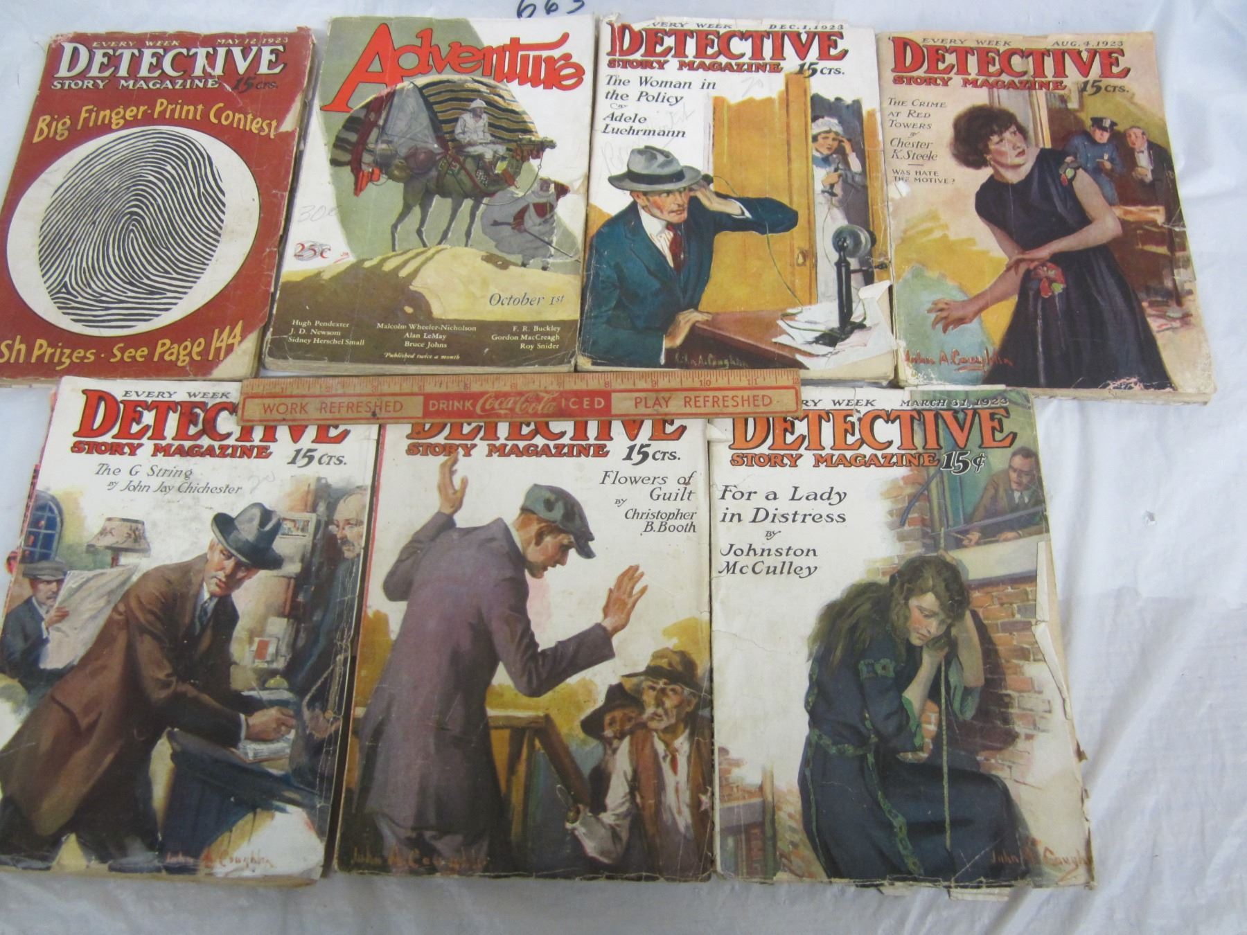 7 Copies of Detective Magazine 1923 and Adventure Magazine