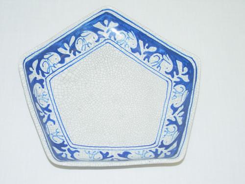 7" DEDHAM POTTERY RABBIT PATTERN 5 SIDED DISH (BOWL)- BLUE DEDHAM POTTERY STAMP (REGISTERED) 1932 - EXCELLENT CONDITION;
