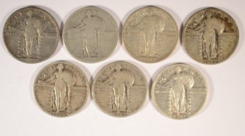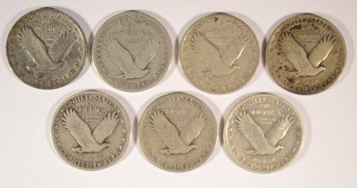 7 DIFFERENT STANDING LIBERTY QUARTERS ( 17-1, 18-S, 20, 26 , 27, 27-D, 28) AG-