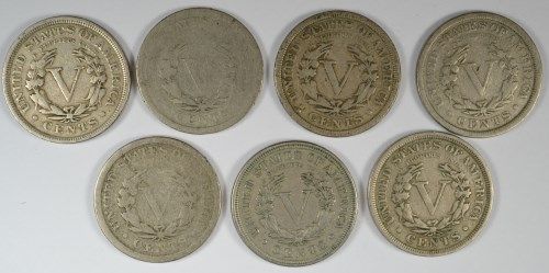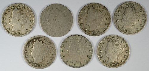 7-DIFFERENT V-NICKELS (94,95,96,05,08,11,12-D) AG-VF