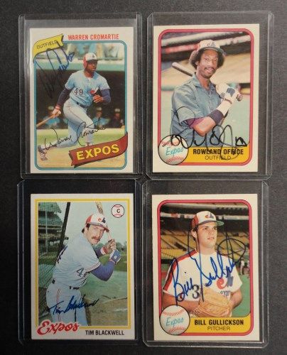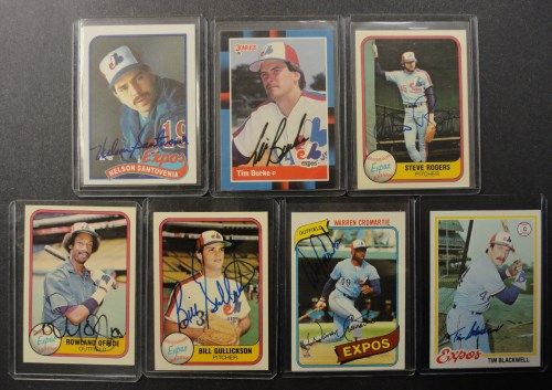 Tim Blackwell, Warren Cromartie, Bill Gullickson, Rowland Office, Steve Rogers, Tim Burke, & Nelson Santovenia. Mostly NM Est. Value $20.00 - $25.00.
