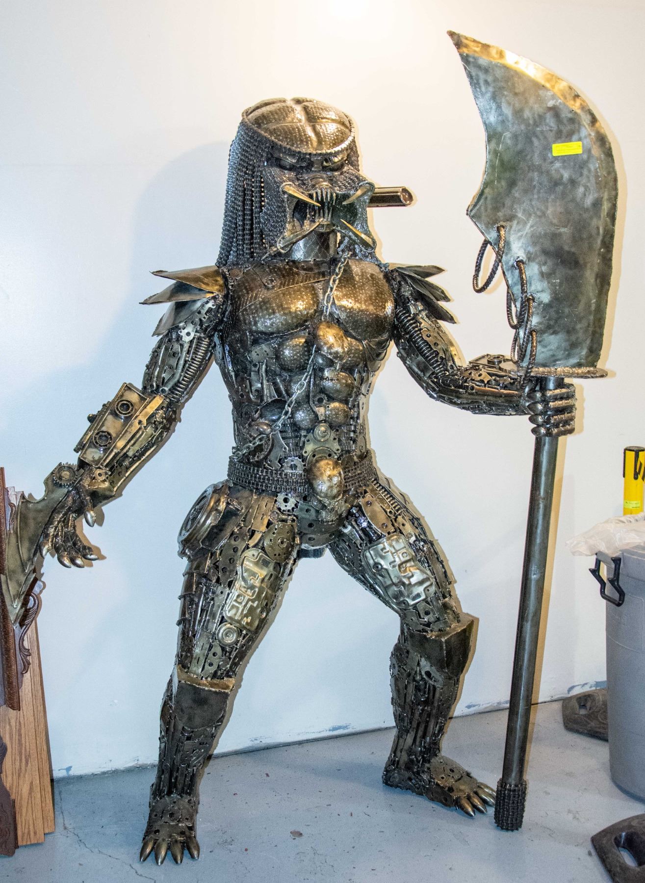 7 FOOT TALL HAND MADE METAL PREDATOR STATUE
