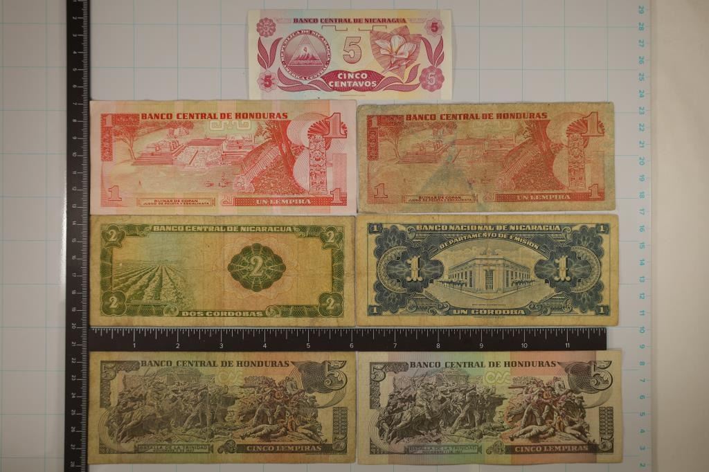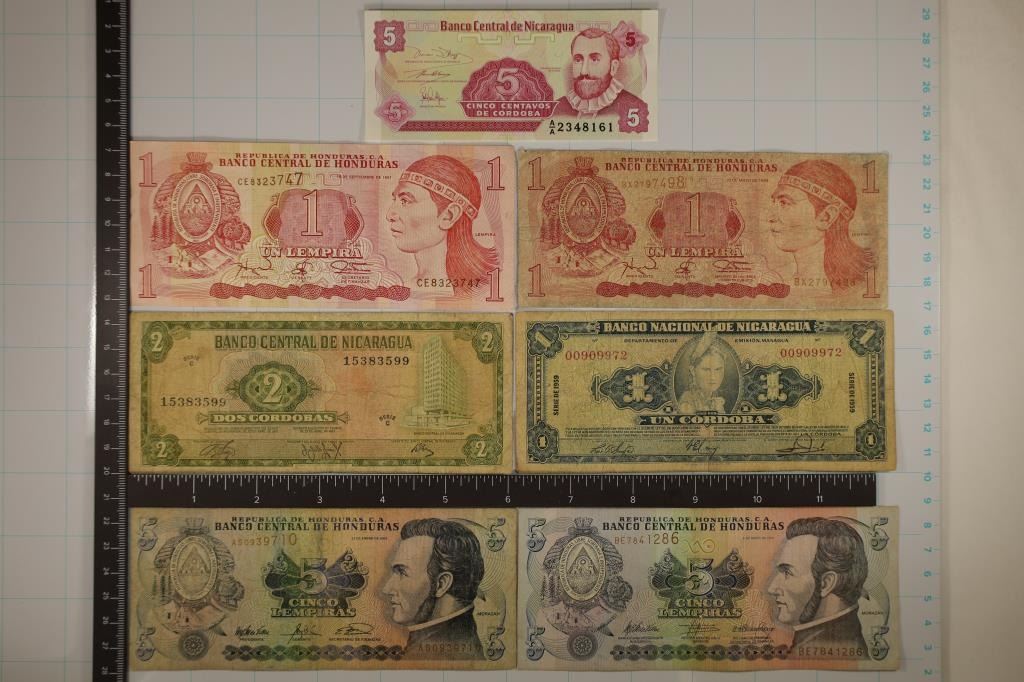 1972-2 CORDOBA & CRISP UNC 5 CORDOBA AND 4-HONDURAS BILLS:, 1994 & 1997-1 LEMPIRA, 2003 & 2010- 5 LEMPIRA