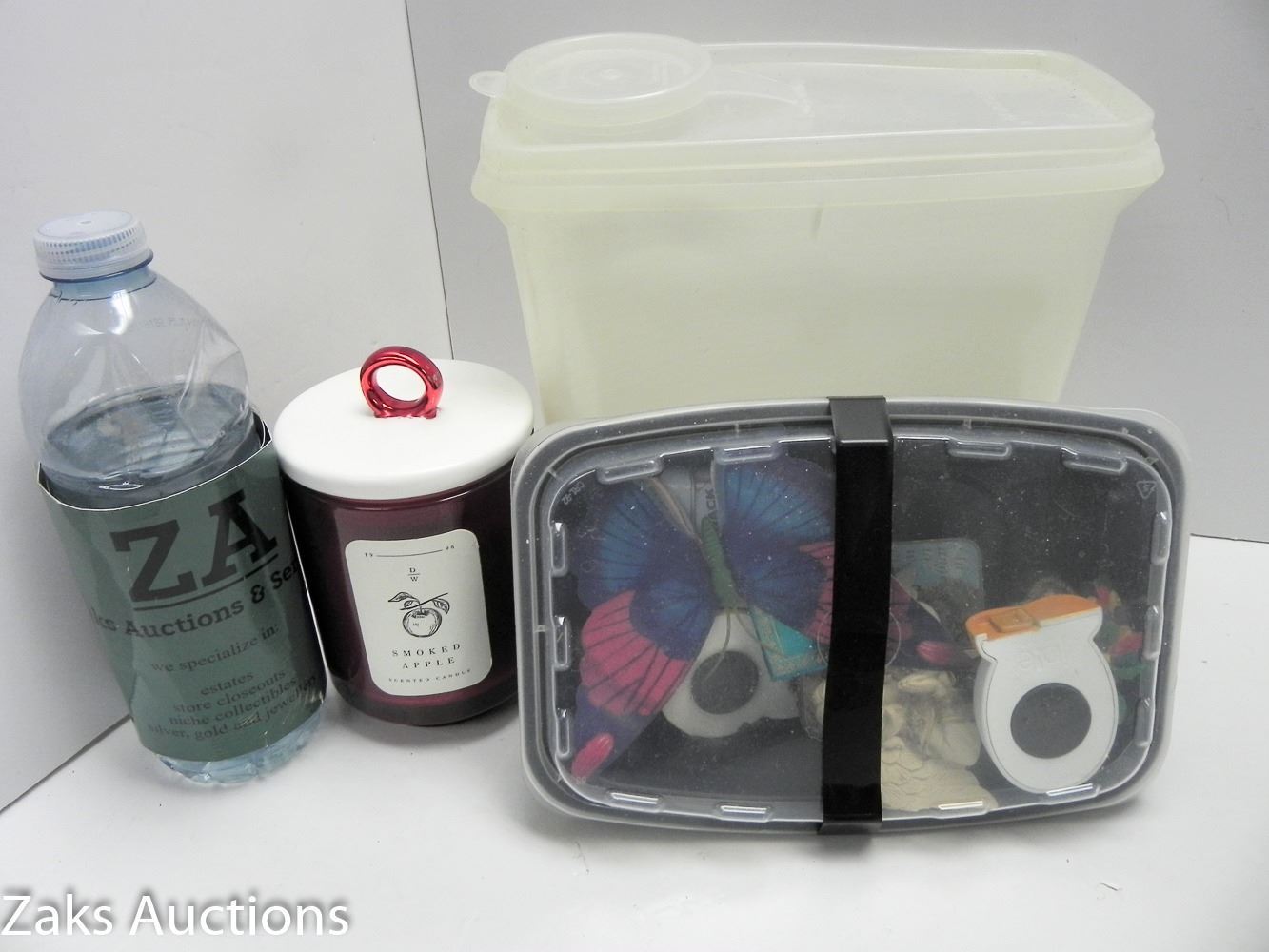 7 FRIDGE MAGNETS, TUPPERWARE BEVERAGE AND CANDLE