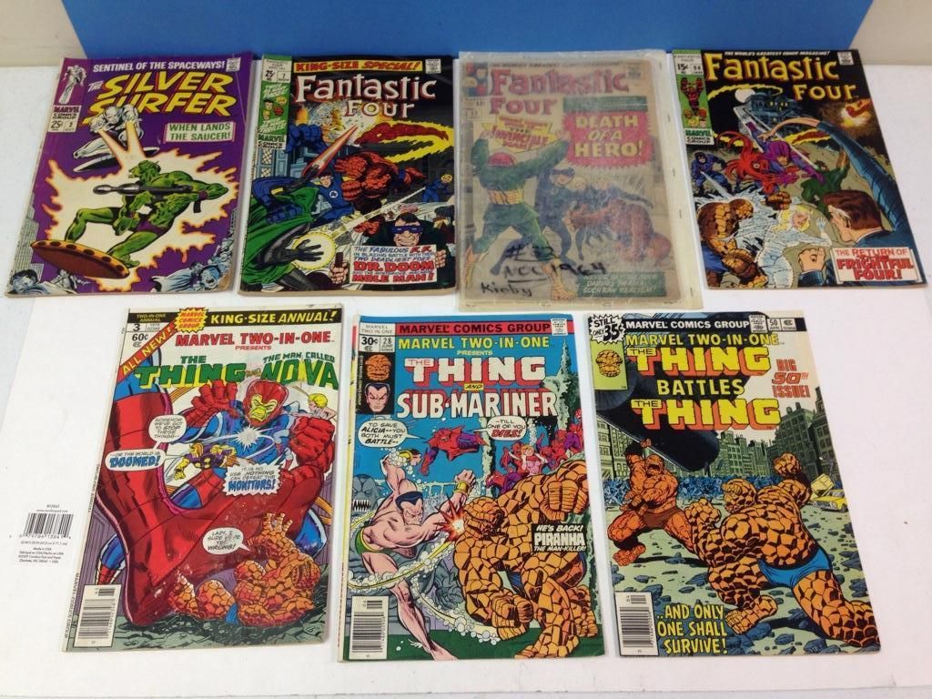 (7) Fantastic Four, The Thing and Silver Surfer Comics from the 60's and 70's for one money