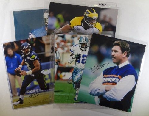 Mike Ditka, Emmitt Smith, Bill Bellichick, Andy Dalton, Taylor Lewan, Lawrence Taylor, Russell Wilson. No COA's. Est. Value $150.00 - $225.00.