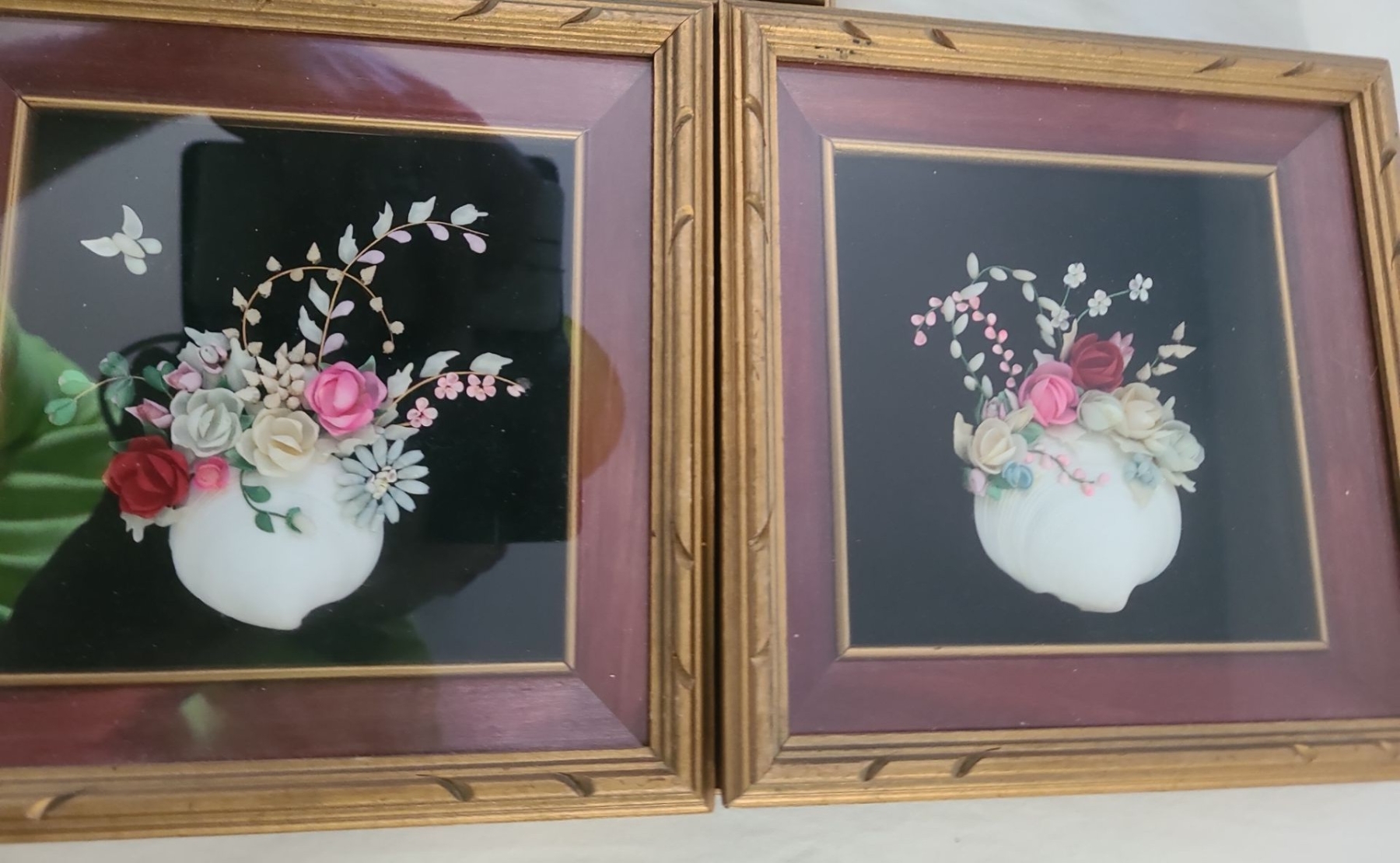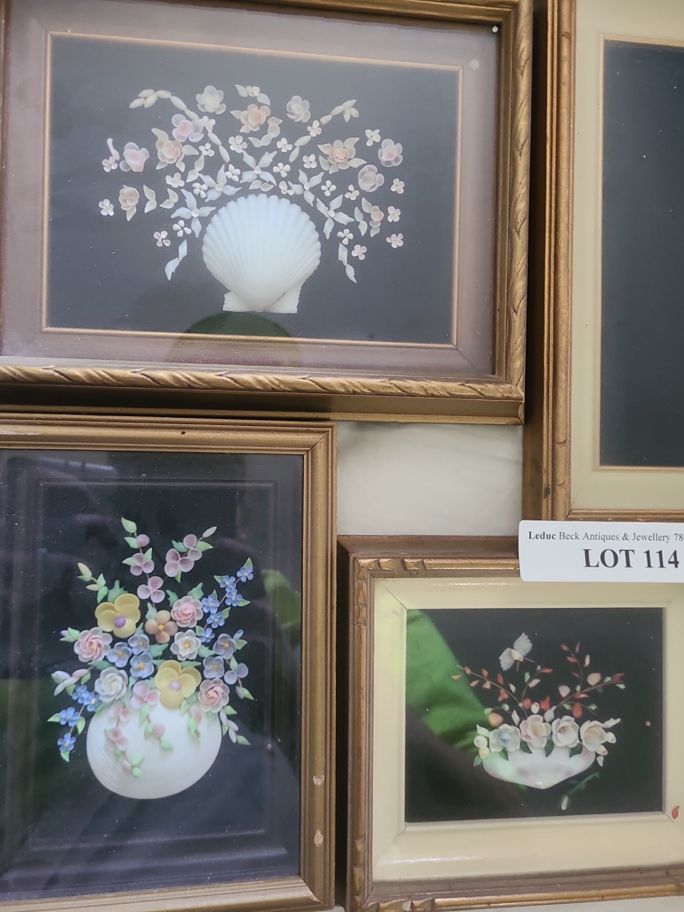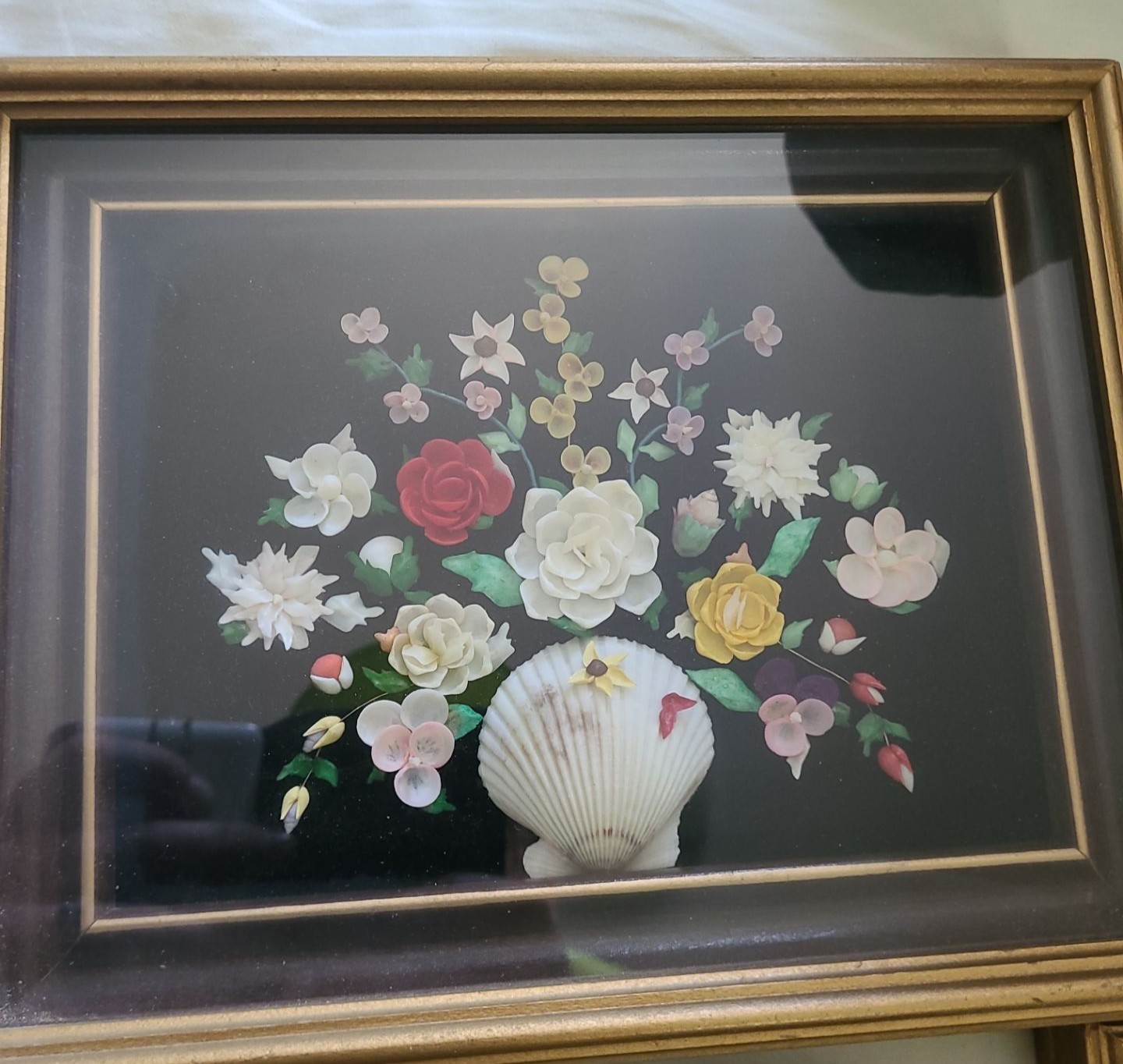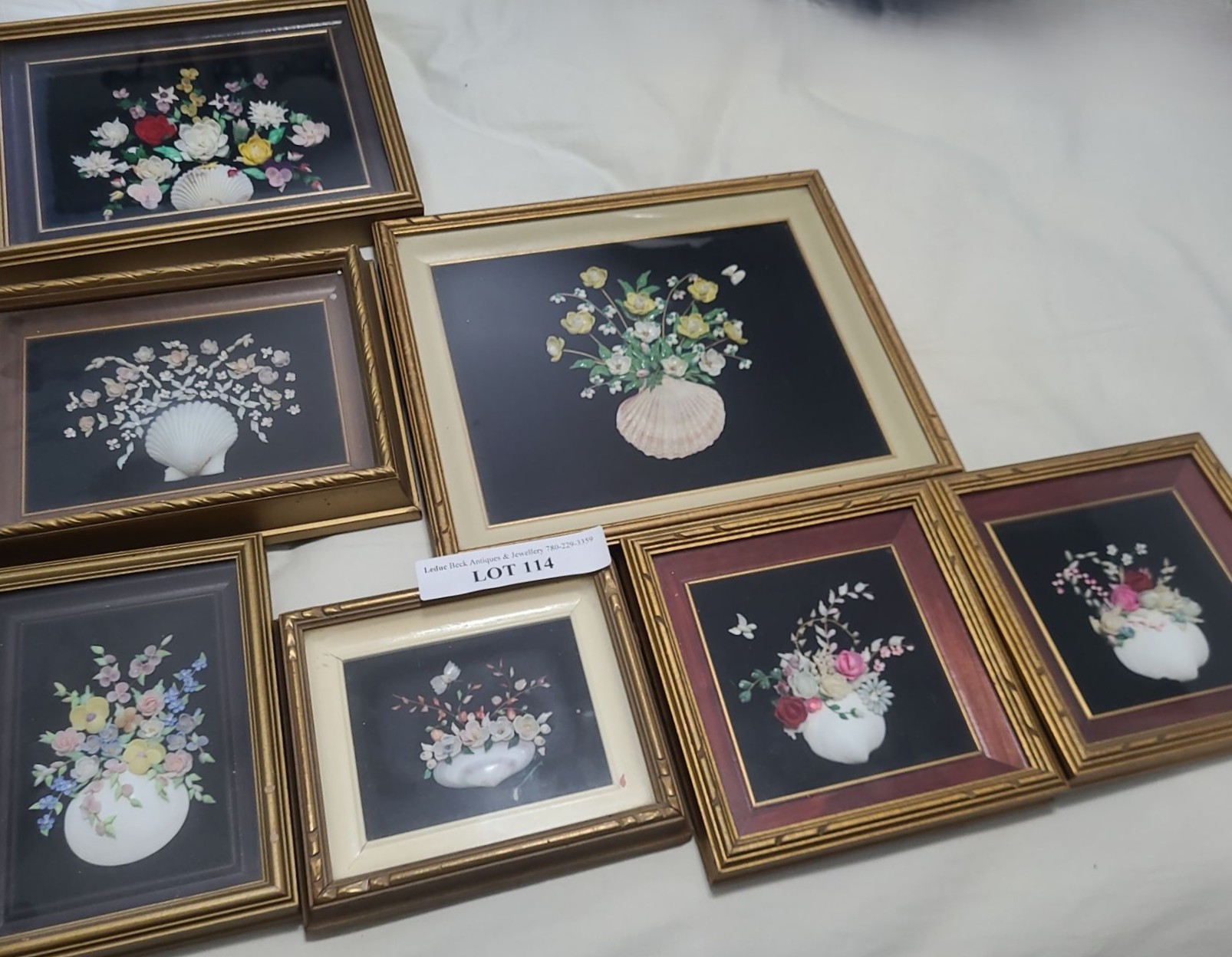 7 Framed Under Glass Intricate Shell Art Largest 12 w 10 h