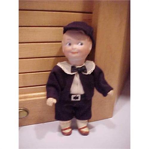 I can hardly read his markings but I am sure he is an Armand Marseilles googley from their 200 series and I think this is 254. He is in very good condition and I could not find any major flaws. I was told his outfit was original but I can't guarantee that. It is adorable and in excellent condition. Being dressed as a boy adds to his appeal. His painting is very good with one cheek slightly darker than the other but this is to be expected when items are hand painted.