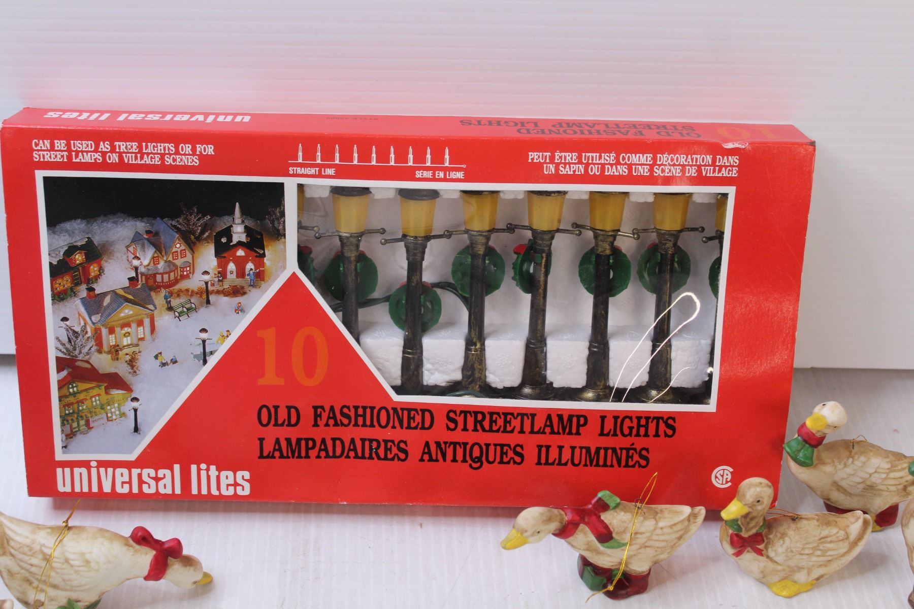 (7) Goose Christmas Decorations, Package of 10 Street Lamps for Christmas Village (Tested, Works)