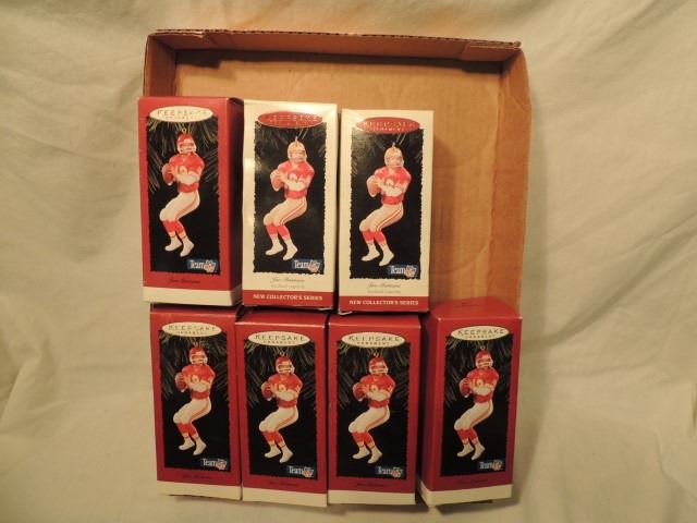 7 HALLMARK JOE MONTANA KEEPSAKE ORNAMENTS NIB