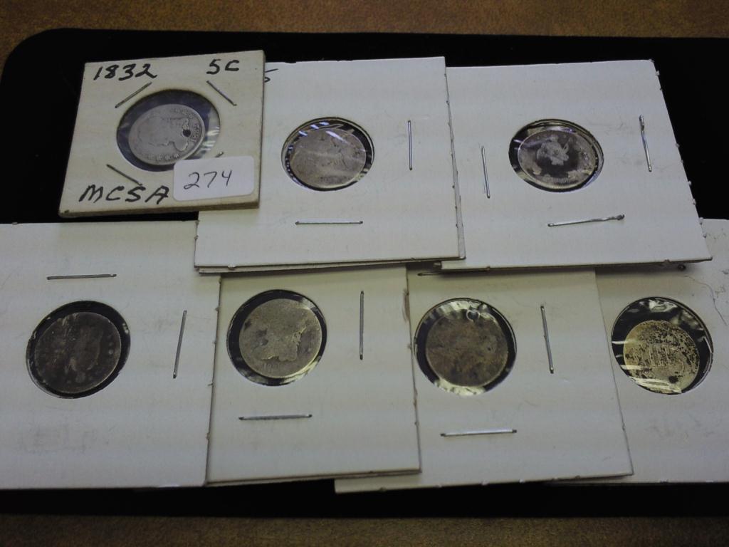 6 HALF DIMES AND 1 THREE CENT PIECE (SILVER)