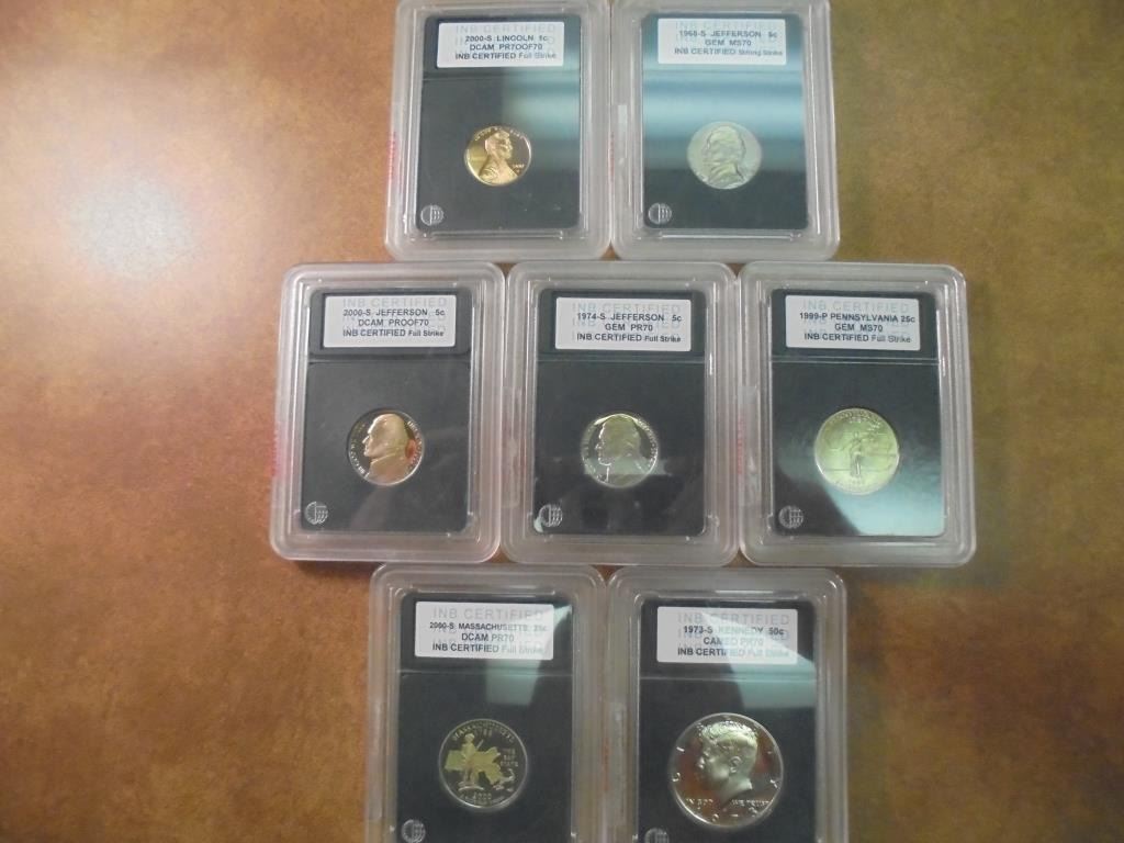 2000-S LINCOLN CENT PROOF, 1968-S UNC JEFFERSON NICKEL, 1974-S PROOF JEFFERSON NICKEL & 2000-S PROOF JEFFERSON NICKEL, 1999-P PENNSYLVANIA QUARTER UNC, 2000-S MASSACHUSETTS QUARTER PROOF AND 1973-S