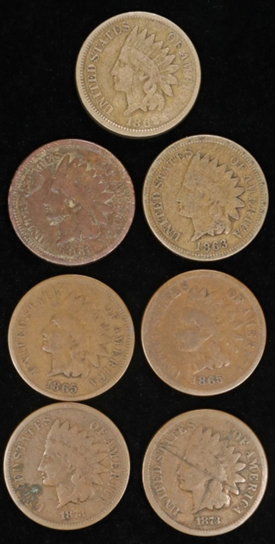 1862 VG, SCRATCHES, 1863 GOOD, SCRATCHES, 1863 GOOD, (2) 1865 GOOD, (2) 1873 AG DAMAGED ESTIMATE $90 - $130.