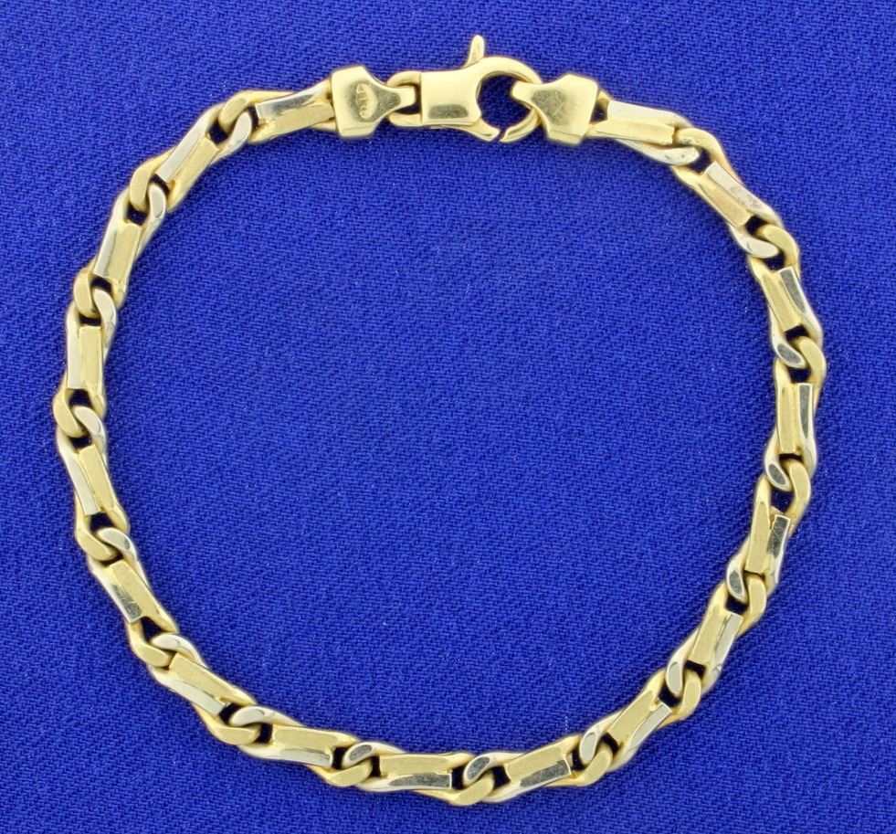 14K yellow and white gold, it is 3.2mm wide and has a lobster clasp. 12.6g