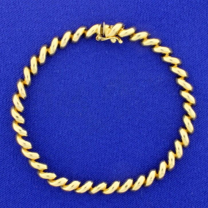 Italian made 14K yellow gold. The bracelet is 5.4mm wide and has a safety clasp.           10.2g