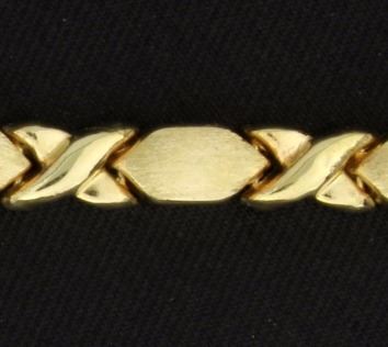 The bracelet is 10K yellow gold and is 4mm wide, it has a lobster clasp. 3.3g
