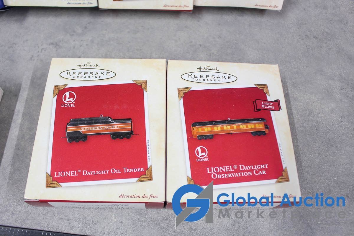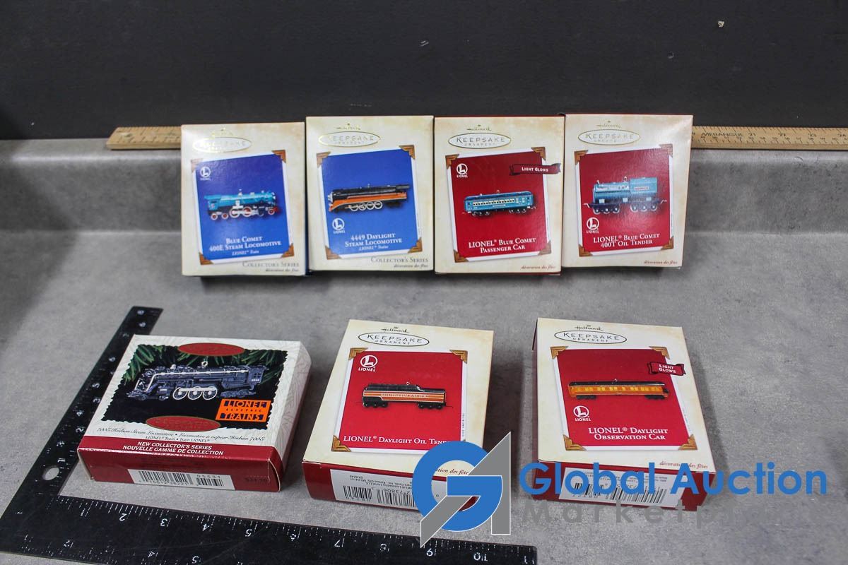 (7) Keepsake Collector Lionel Train Ornaments In Box